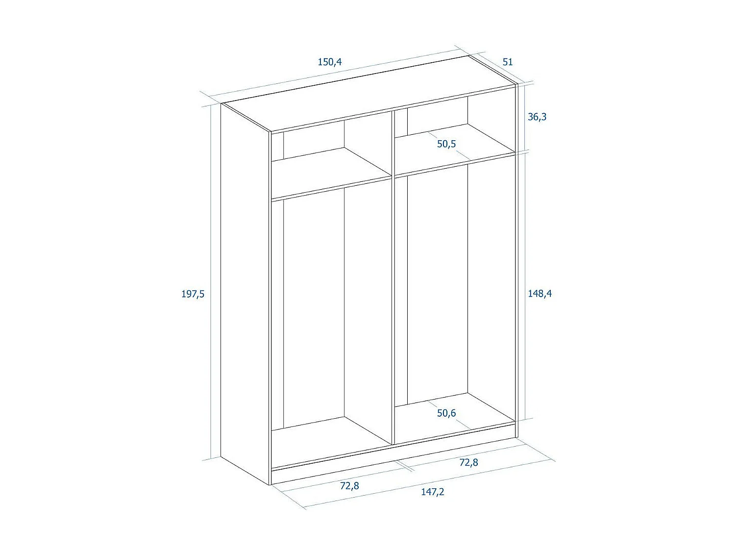 Armario Sava 2 puertas correderas con espejo blanco mate 201x150x58,7 cm