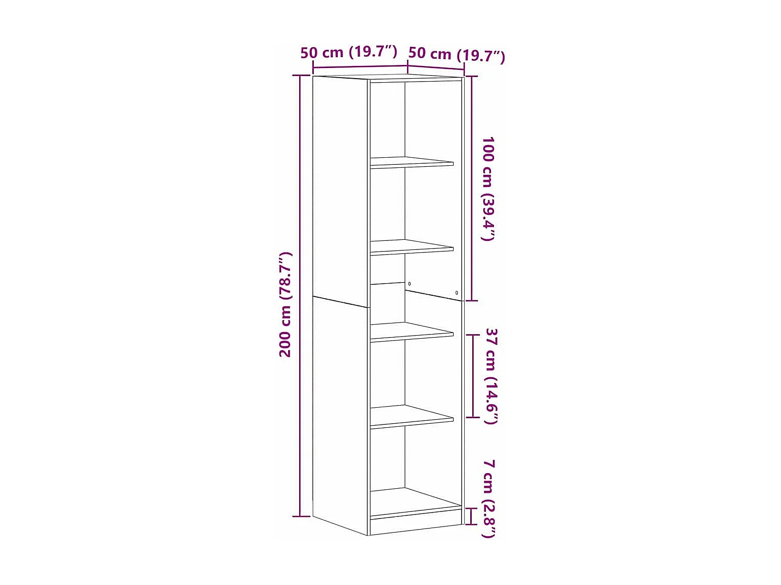 Armario Roble negro 50 x 50 x 200 cm Madera contrachapada