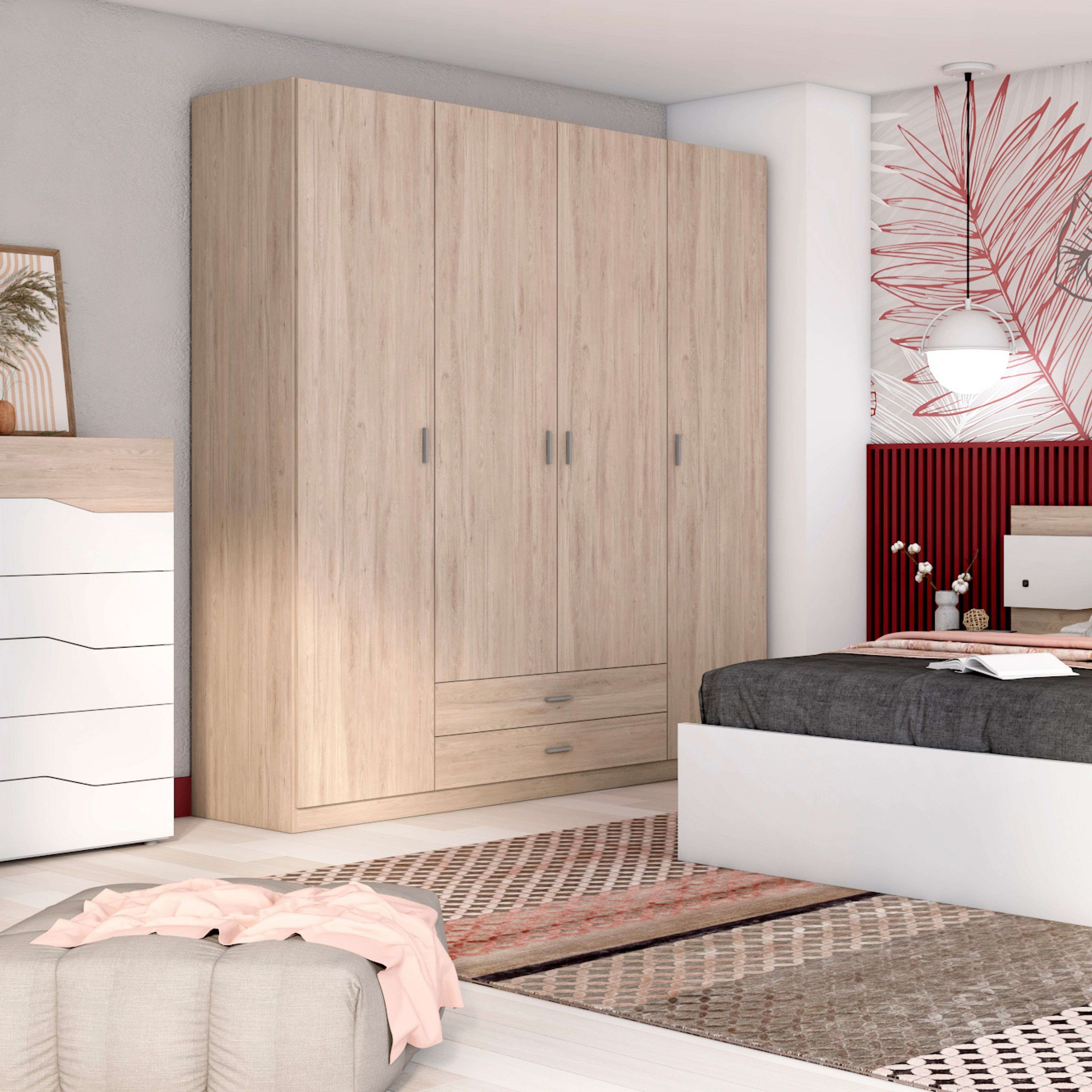 Armario Roma 4 puertas 2 cajones dorm. hab. color sahara 200x215 cm