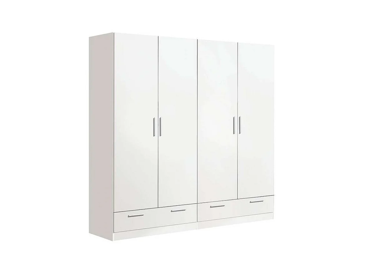 Armario ropero 4 puertas abatibles 2 cajones Lorena acabado blanco, 196cm(alto) 200cm(anch