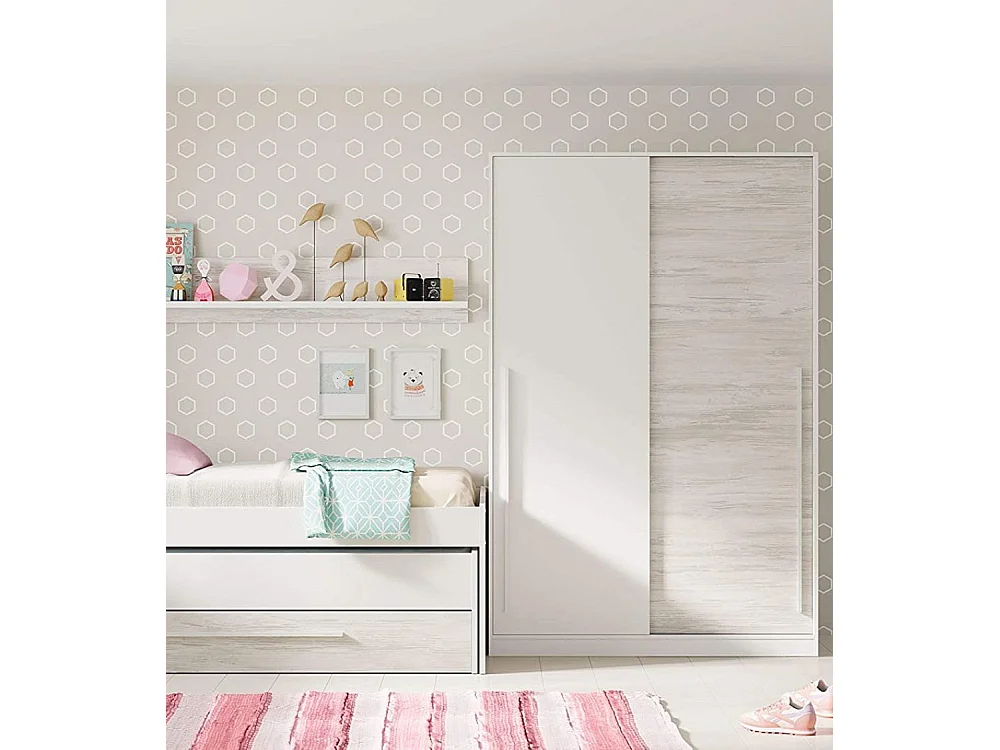 Armario juvenil de 200x120x50 cm con puertas correderas y guías metálicas en blanco India