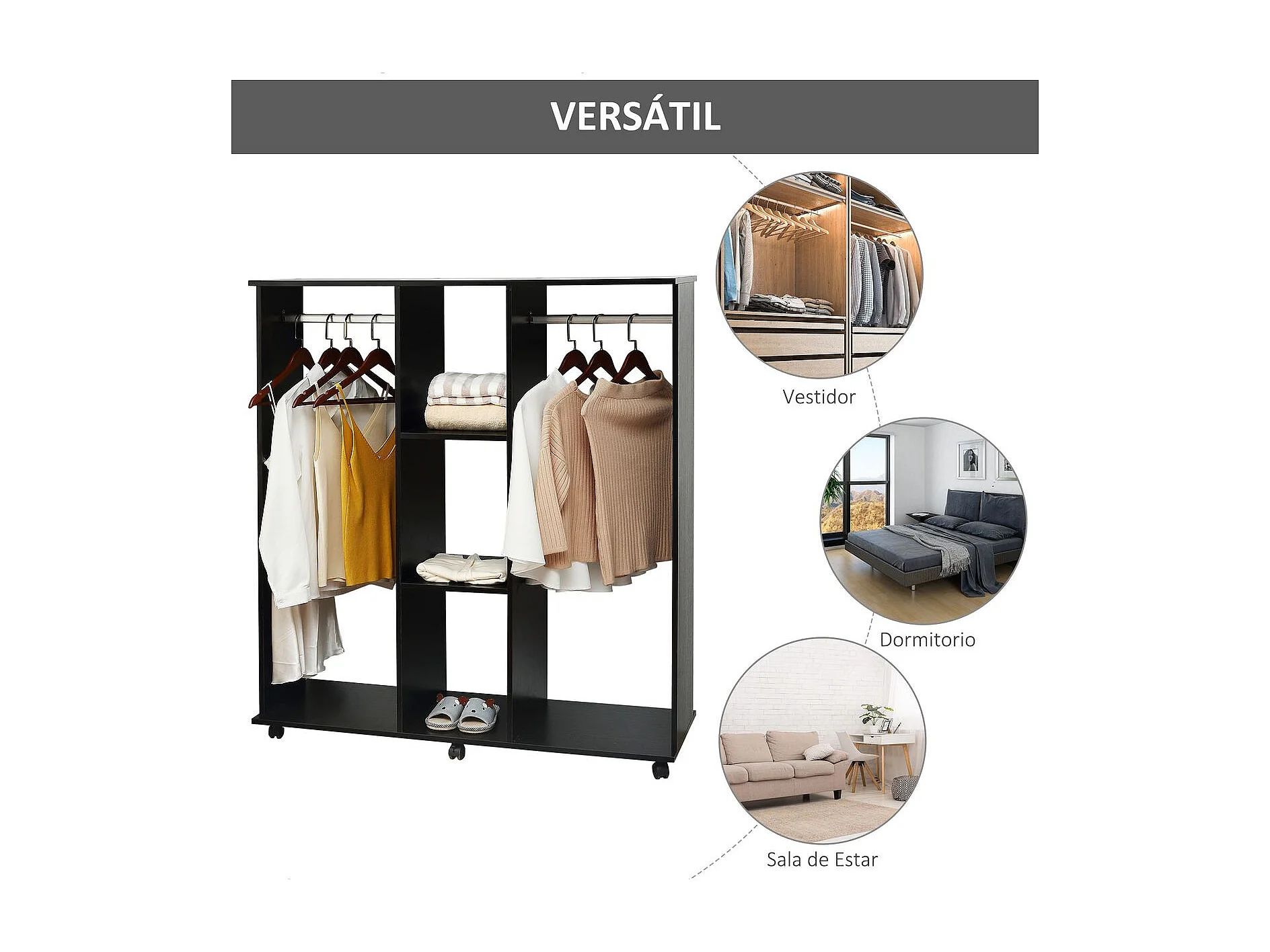Perchero ajustable para ropa 4 ruedas 2 barras ES612326