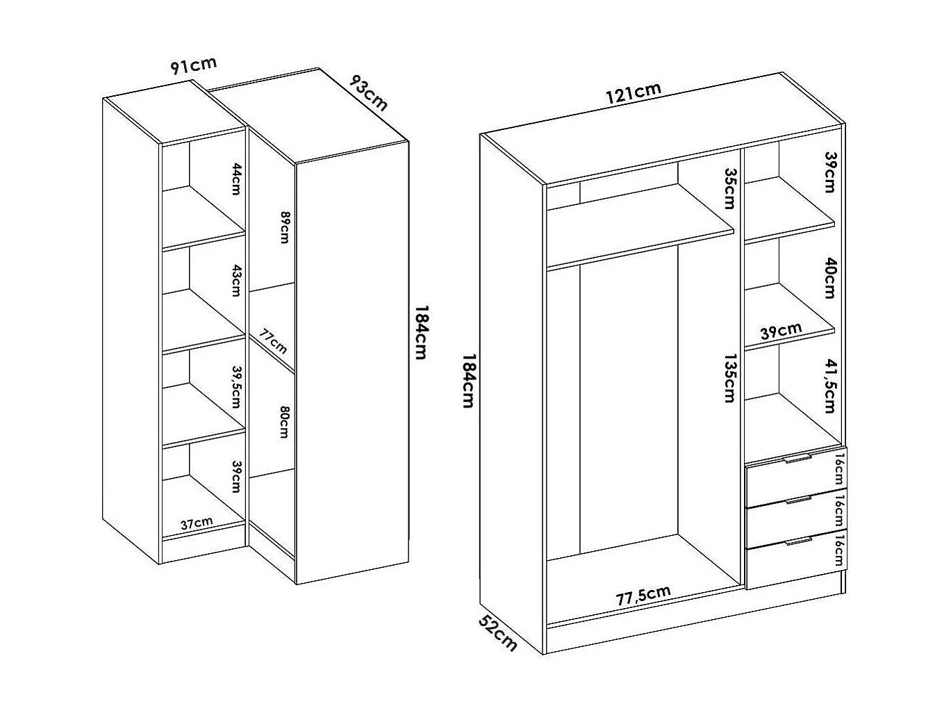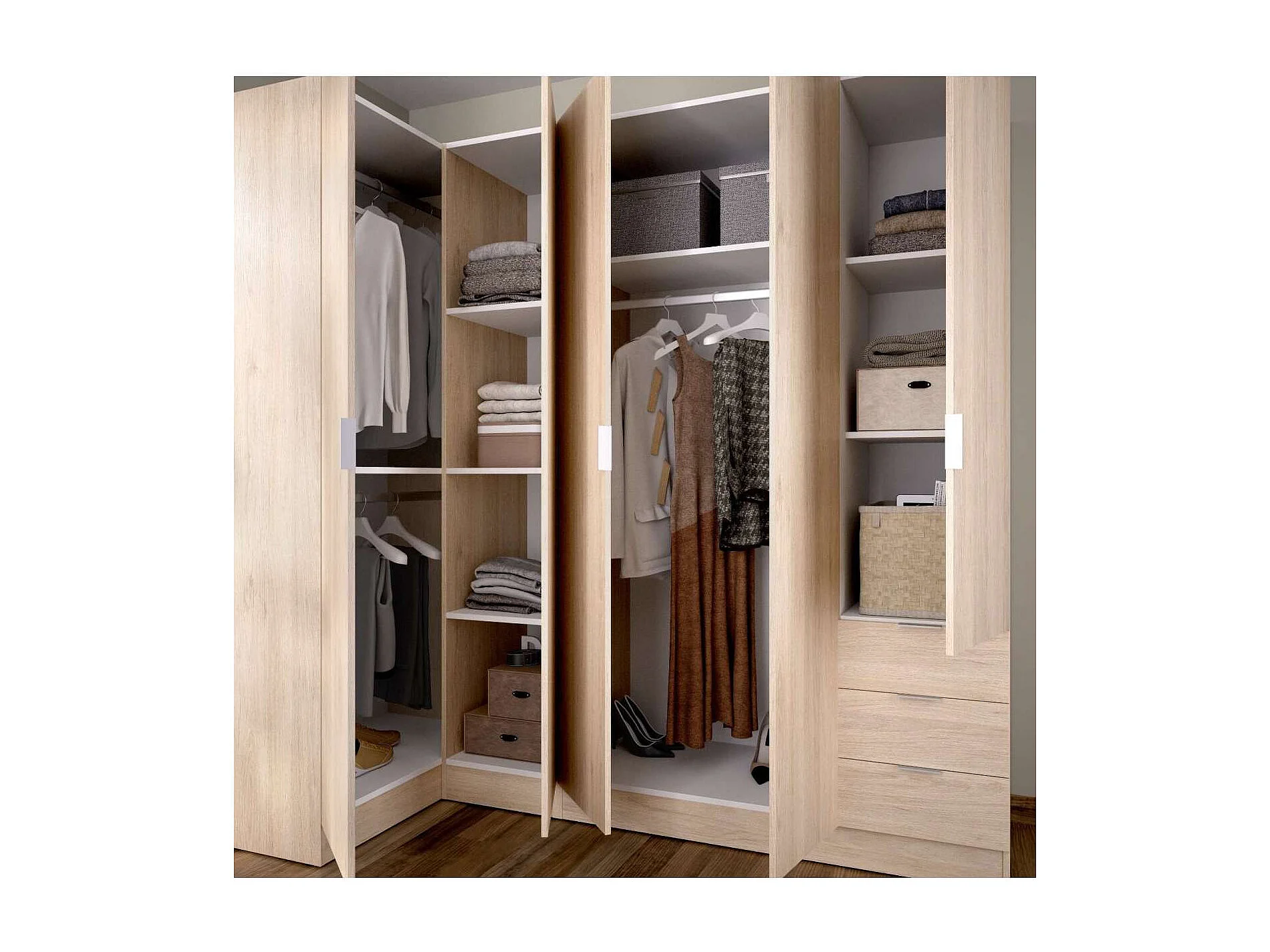 Armario ropero rincón puertas abatibles Jaén I acabado natural, 184 cm(alto)213.5 cm(anc