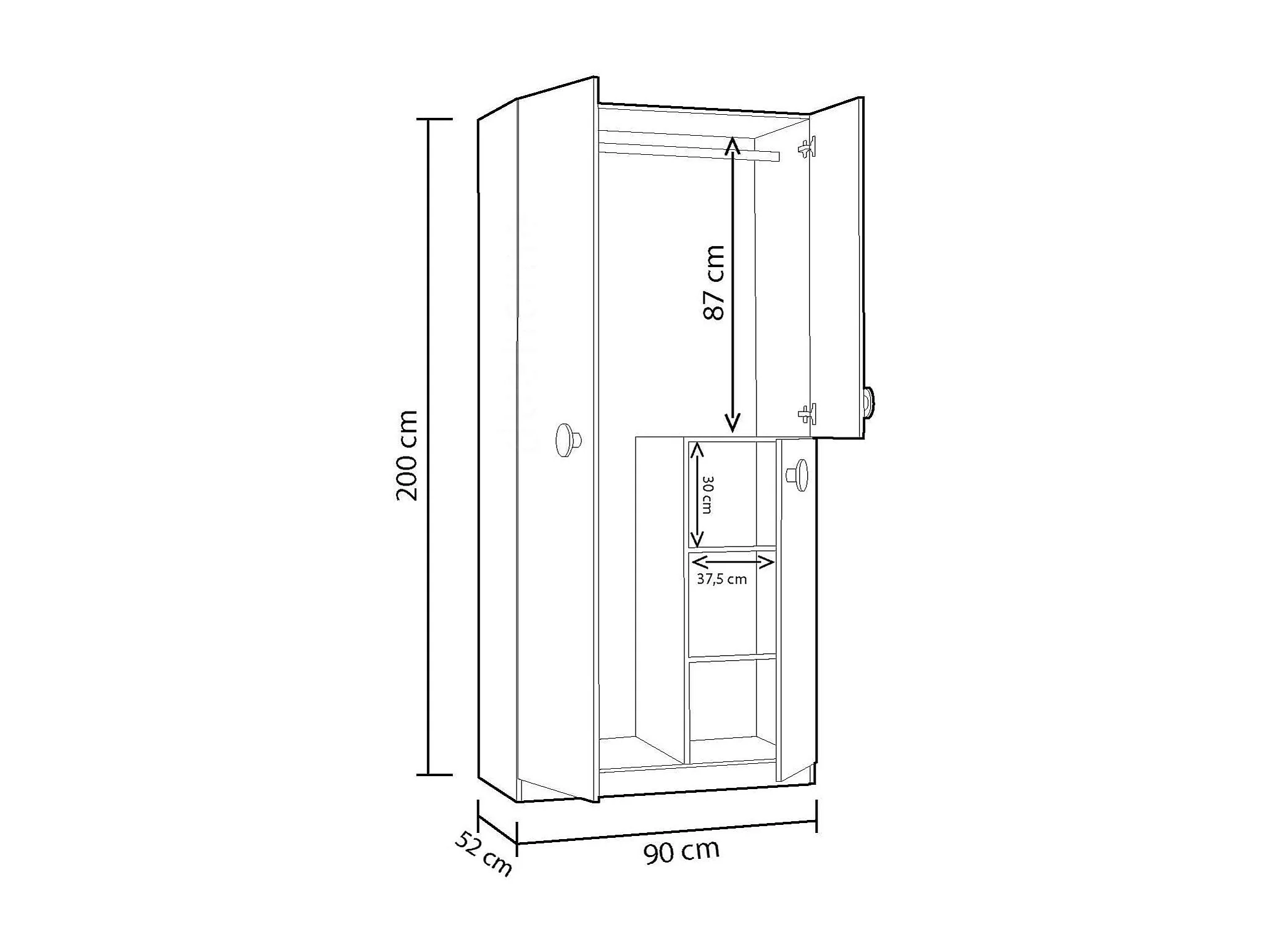 Armario ropero Violeta 3 puertas abatibles acabado blanco/verde acqua 200 cm(alto) 90 cm(a