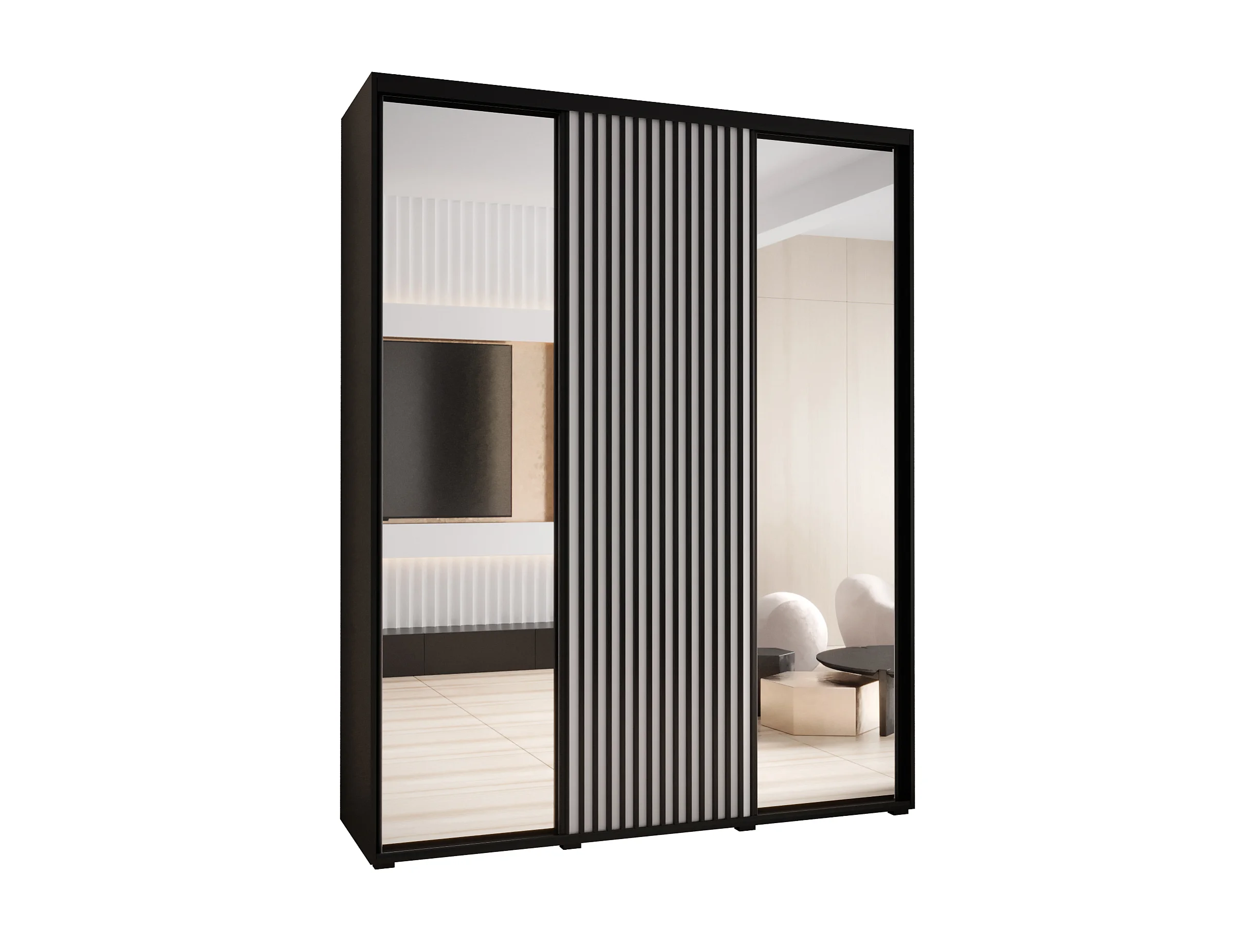 ARMARIO SAPPORO 2 DE PUERTAS CORREDERAS 205,2/200/45 3 puertas (negro/blanco)