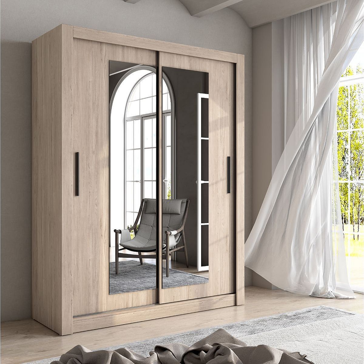 Armario Sava 2 puertas correderas con espejo sahara 201x114,6x58,7 cm