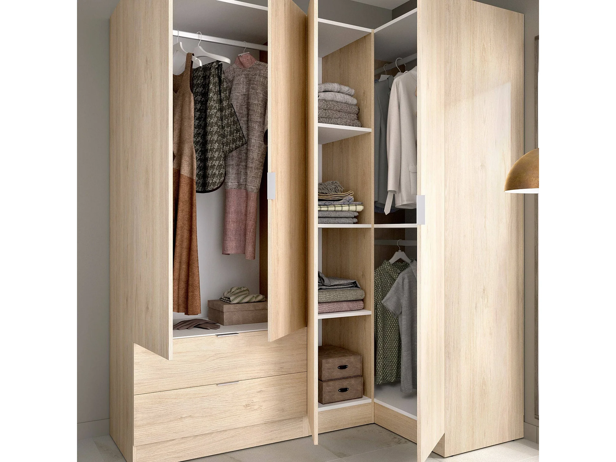 Armario Sillara, Mueble de esquina para dormitorio, Armario de esquina con 4 puertas batientes, 174x91h184 cm, Roble