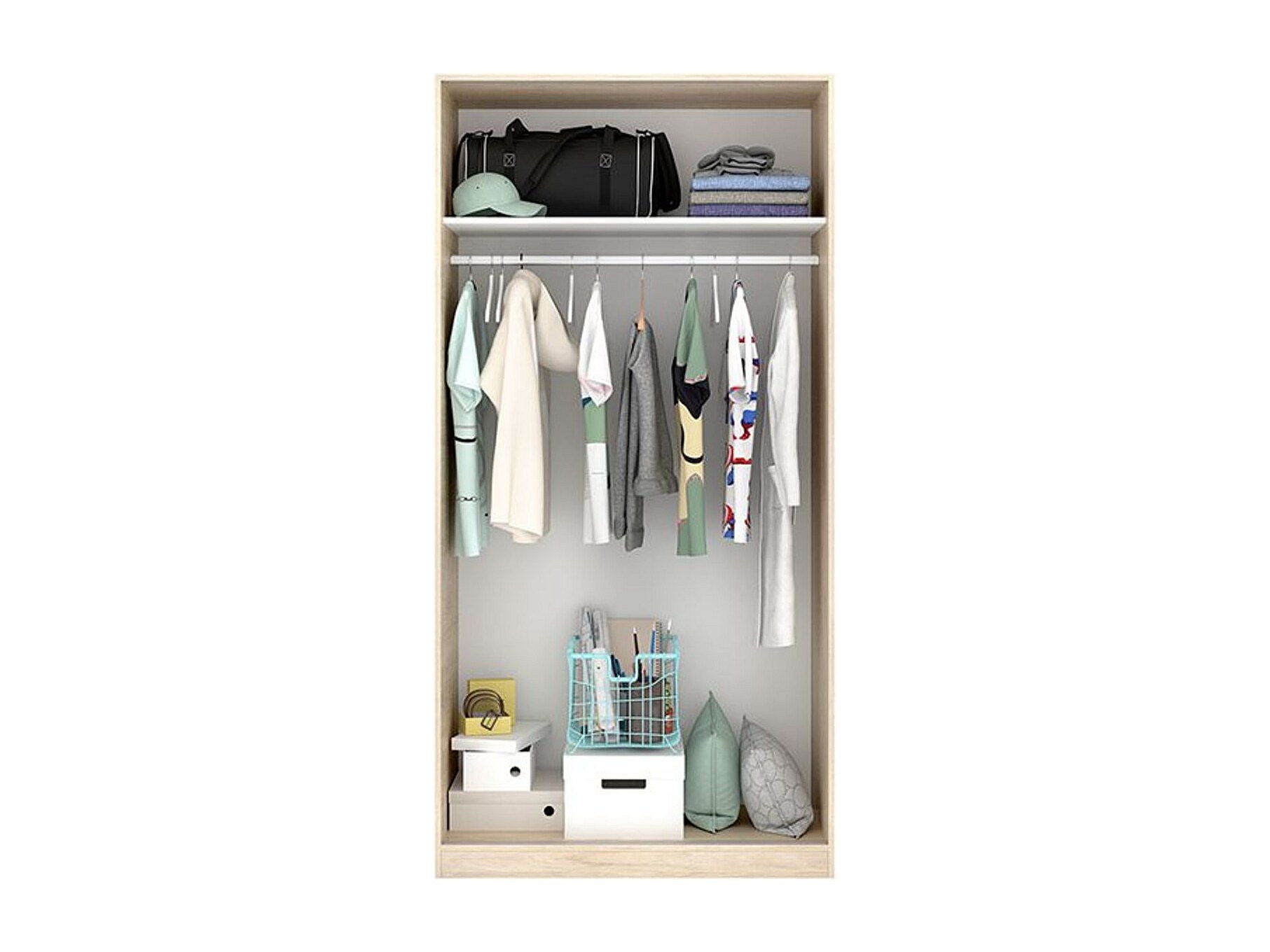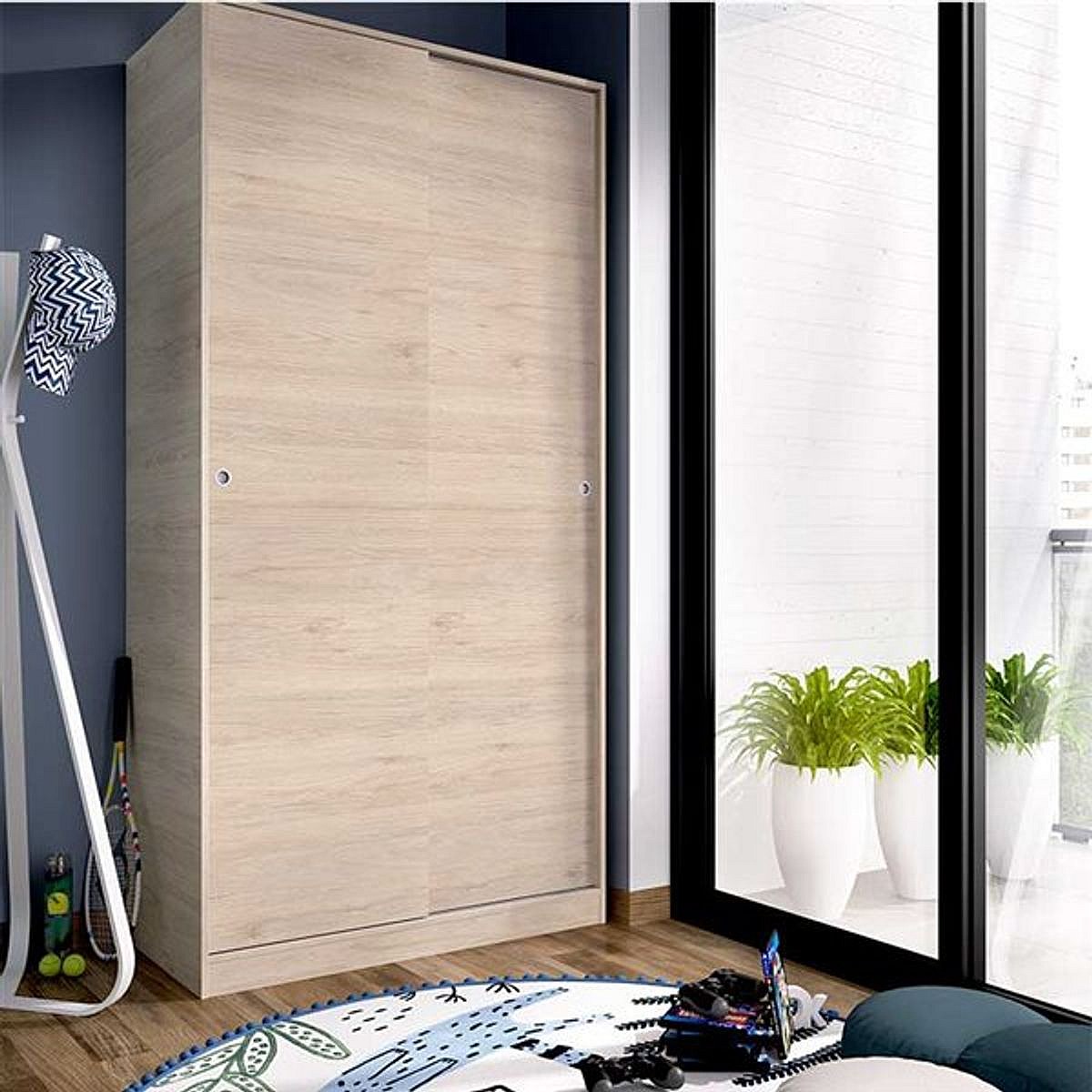 El armario con 2 puertas correderas modelo Slide Plus ha sido diseñado con materiales muy resistentes y un diseño minimalista, lo que le da un aspecto muy elegante y fácil de combinar con otros muebles de distintos estilos o con la decoración que tengas en el dormitorio. El armario cuenta con una organización interior que beneficia el inteligente aprovechamiento del espacio, con una zona para colgar prendas largas, un estante superior y una repisa inferior. Fabricado en melamina de alta calidad, de fácil montaje, diseño funcional y resistente al uso.