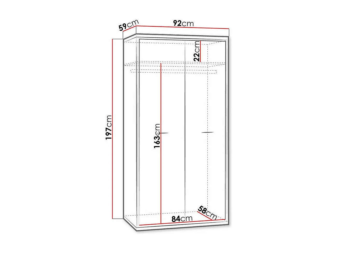 Armario Etrmoni 100, Luminoso madera, 197x92x59cm, Puertas de armario: Con bisagras