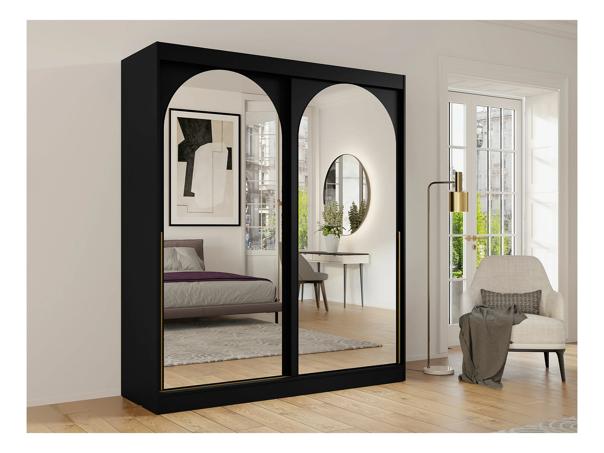 Armario Toledo 132, Negro|Dorado, 216x180x65cm, Puertas de armario: Correderas