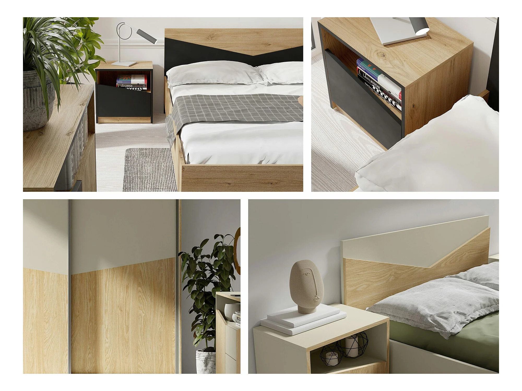 Armario Tenreme 101, Roble|Negro, 215x150x65cm, Puertas de armario: Correderas