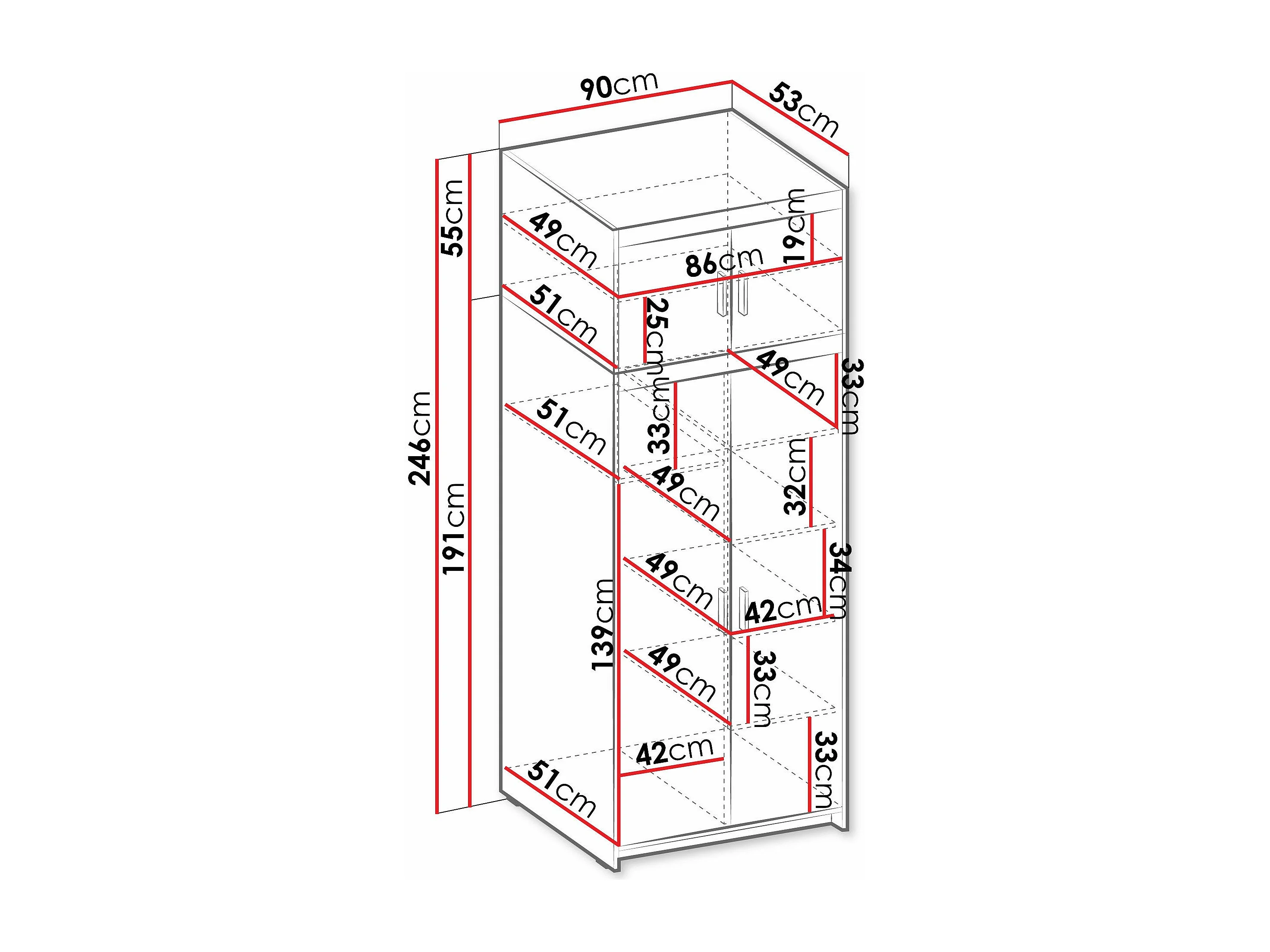 Armario Novduni 103, Blanco, 246x90x53cm, Puertas de armario: Con bisagras