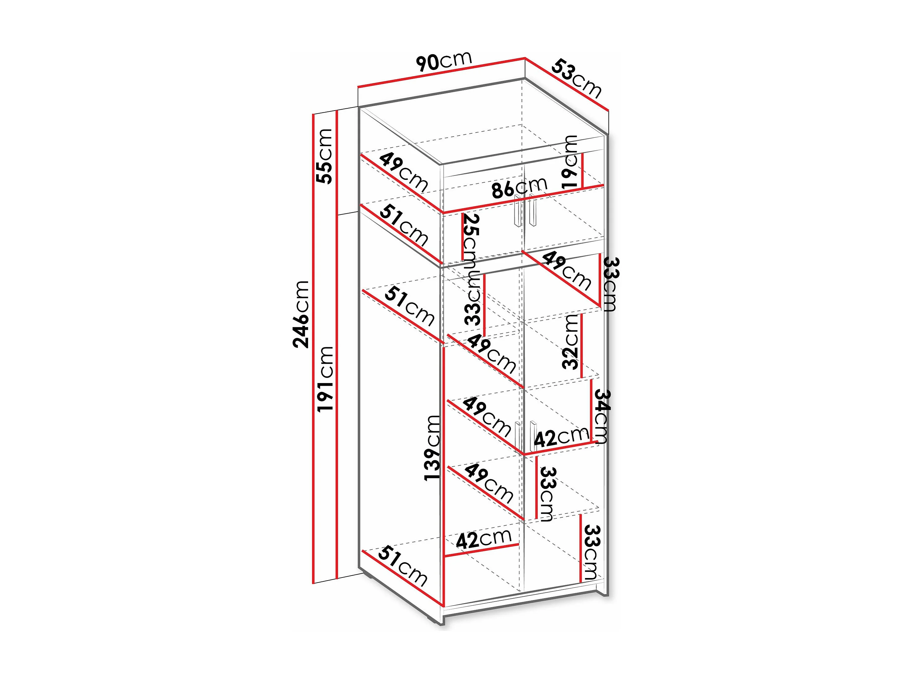 Armario Novduni 103, Roble de lefkada, 246x90x53cm, Puertas de armario: Con bisagras