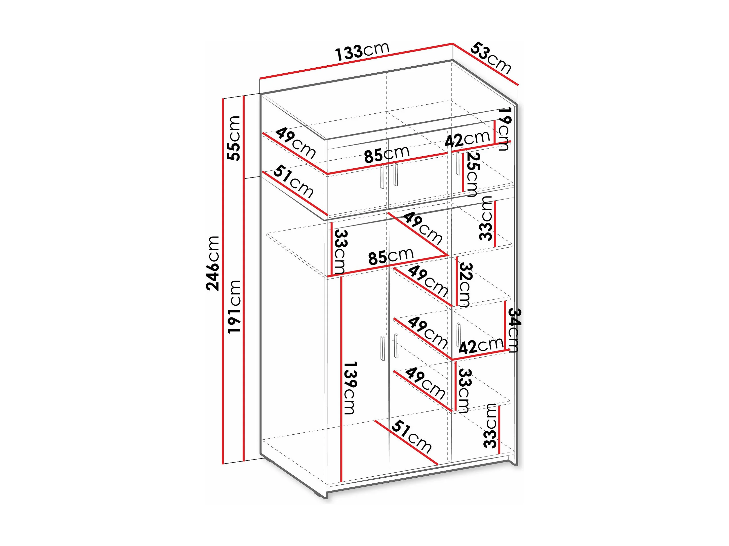 Armario Novduni 104, Blanco, 246x133x53cm, Puertas de armario: Con bisagras