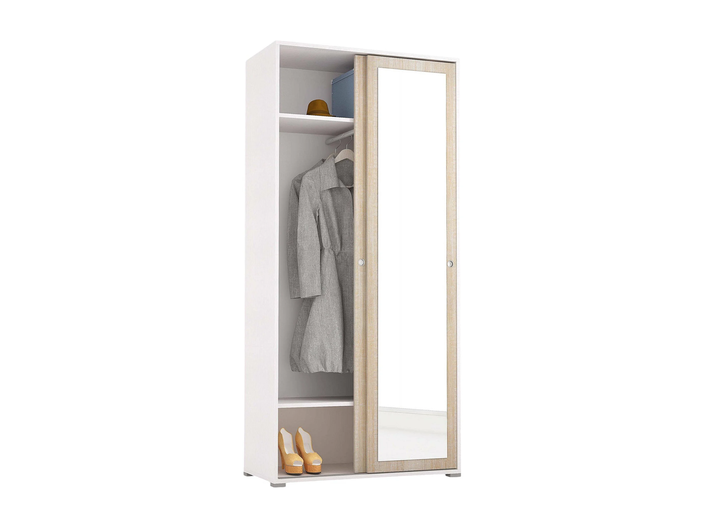 Armario Tulipano, Armario con 2 puertas correderas y espejo, Mueble con barra y estantes, 100% Made in Italy, 90x45h195 cm, Roble y Blanco
