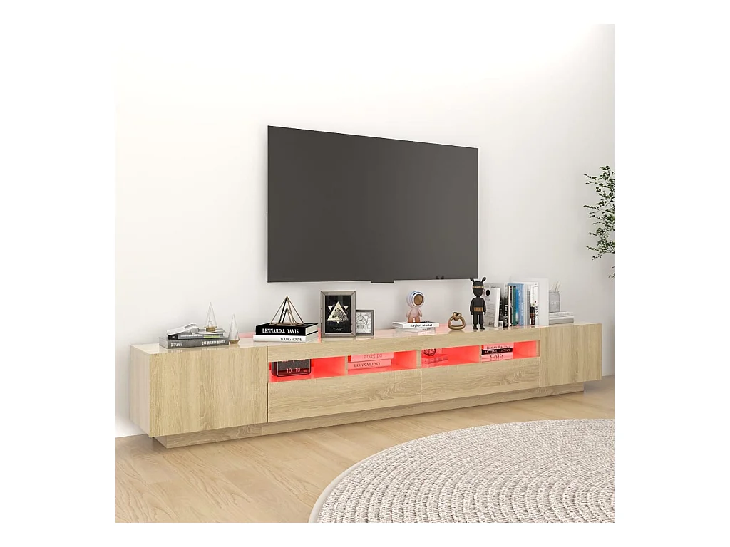Armario TV | Mueble TV | Mueble de salón con luces LED color roble Sonoma 260x35x40 cm