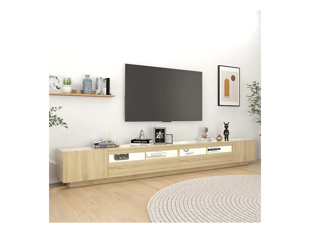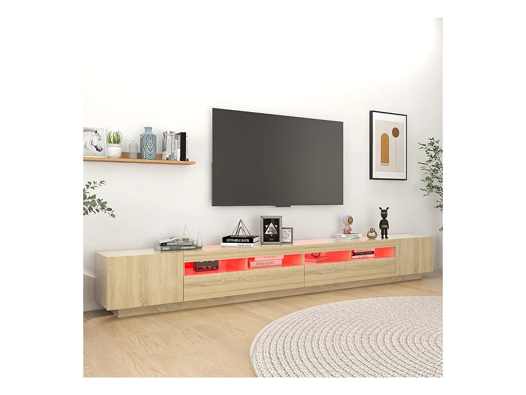 Mueble de TV | Mueble de salón luces LED madera roble artisan 260x35x40 cm