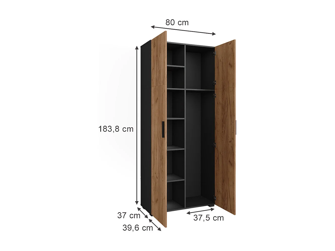 Armario universal antracita/roble dorado 80x37x183.8 ingo