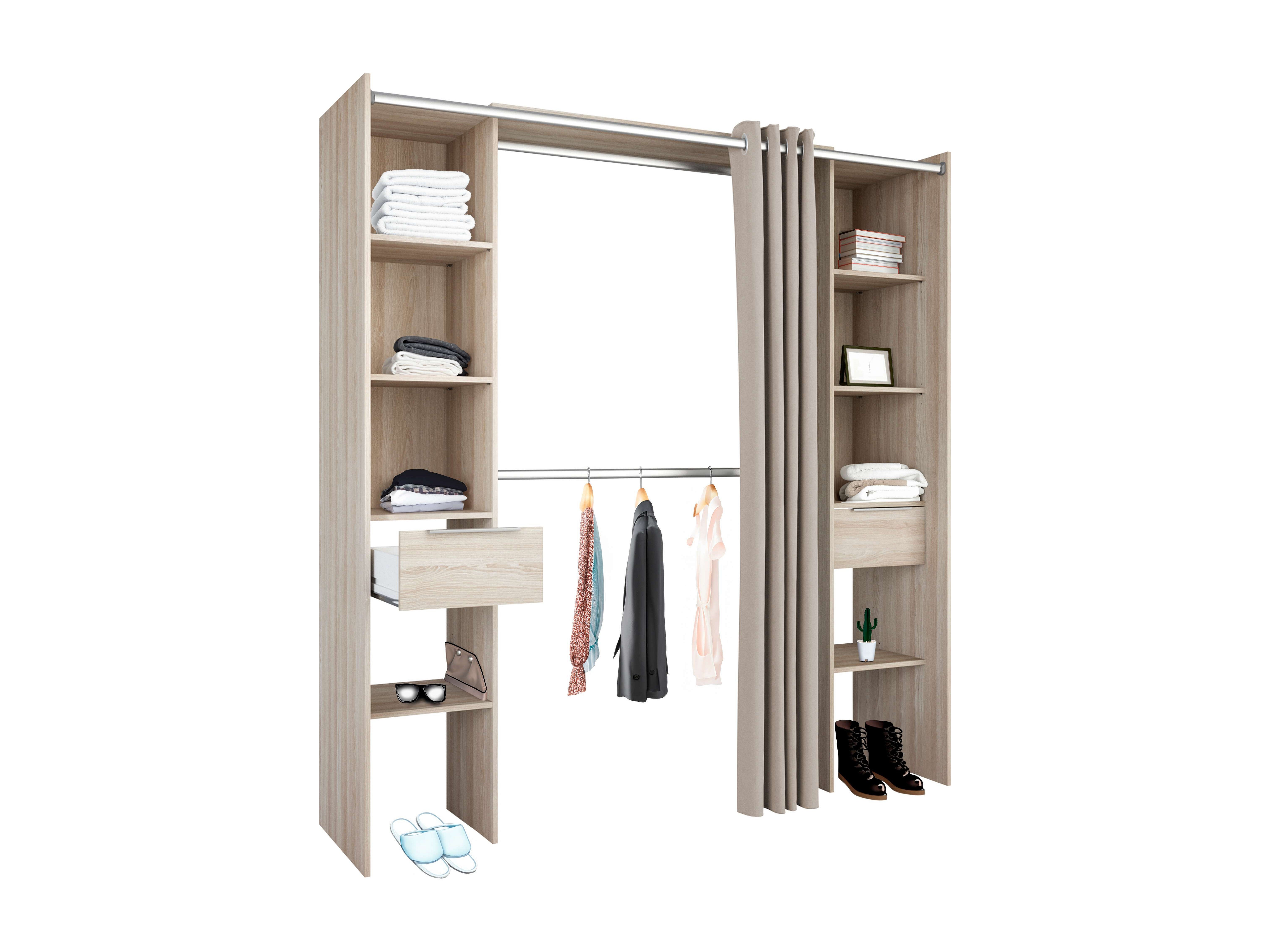 Vestidor Abierto Diego 2 Cajones 8 Estantes 2 Barras Roble 182 cm