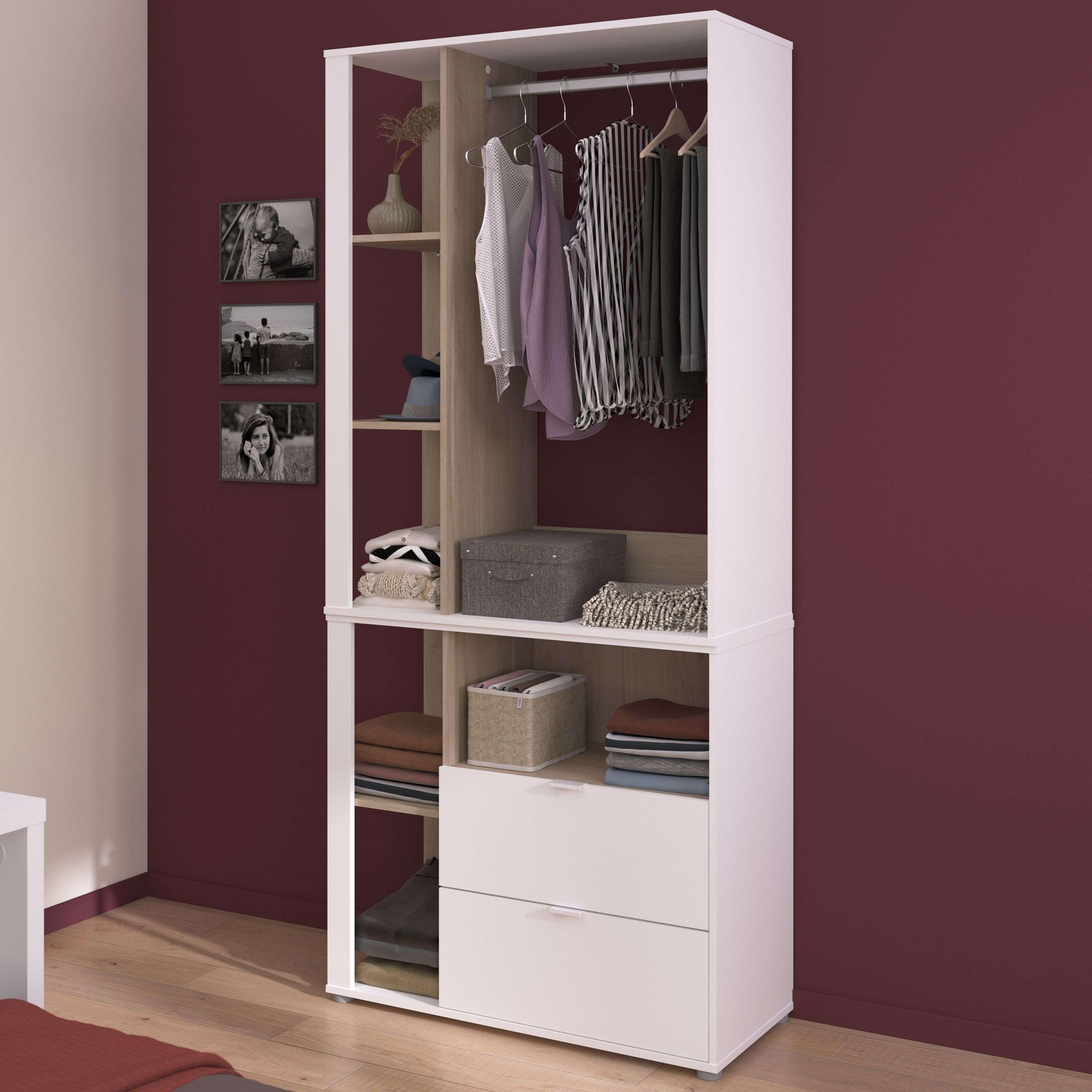 Vestidor Californie 1 Cajón Armario Abierto Roble Kronberg Blanco 118x183 cm