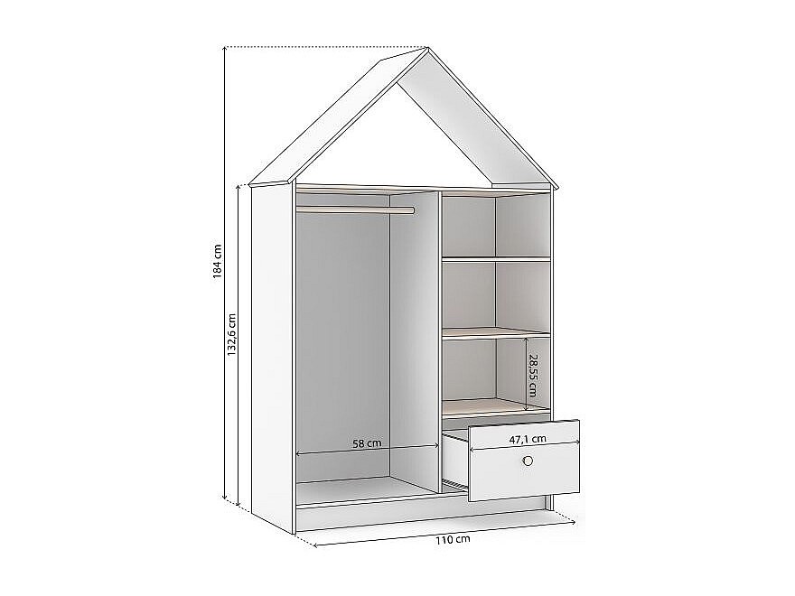 Armario vestidor juvenil Misty Cloud Blanco - Oak Soft