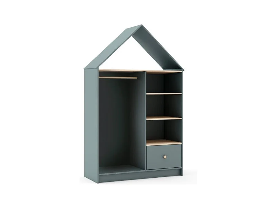 Armario infantil 1 puerta cabaña playa madera lacada verde menta Camila