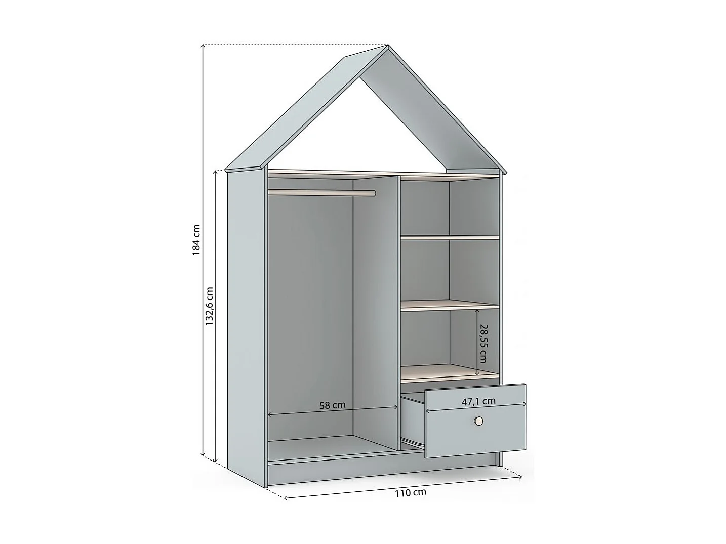 Armario vestidor juvenil Misty Cloud Verde Salvia - Oak Soft