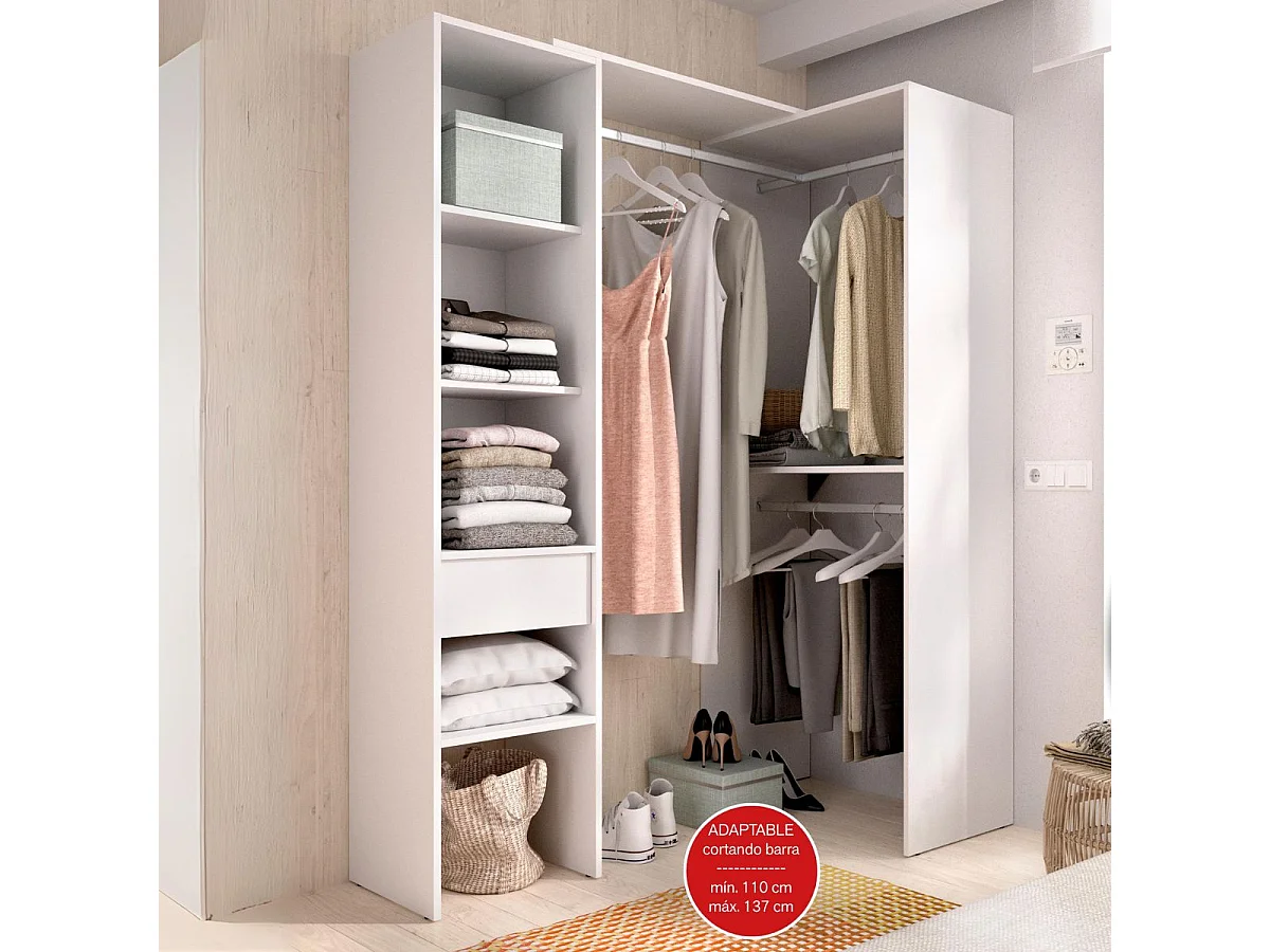 Armario vestidor Suit 3 barras + 1 columna + 1 cajón blanco