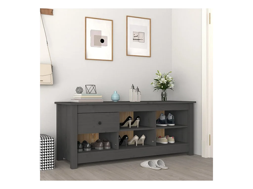 Armario zapatero de madera maciza de pino gris 110x38x45,5 cm ES935368