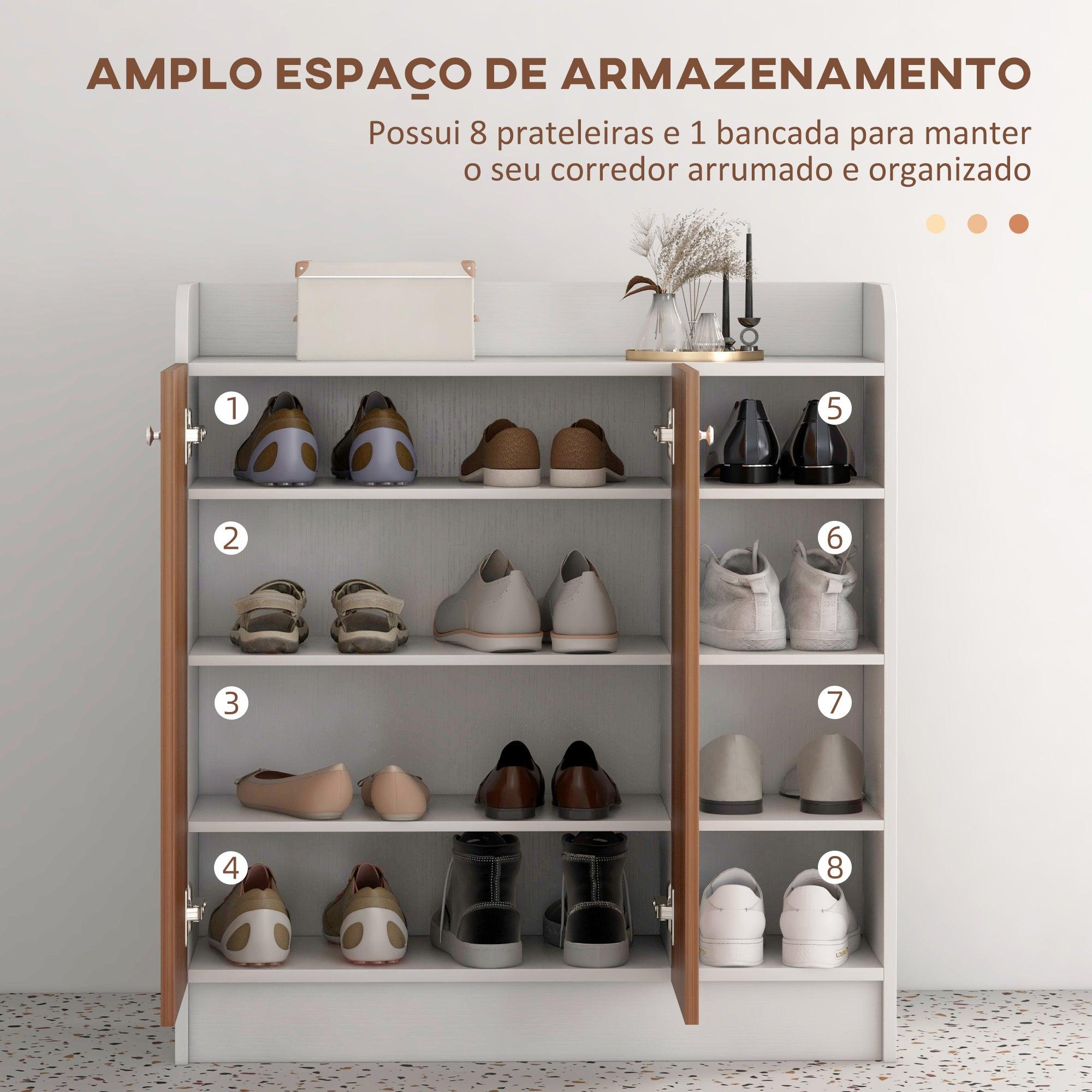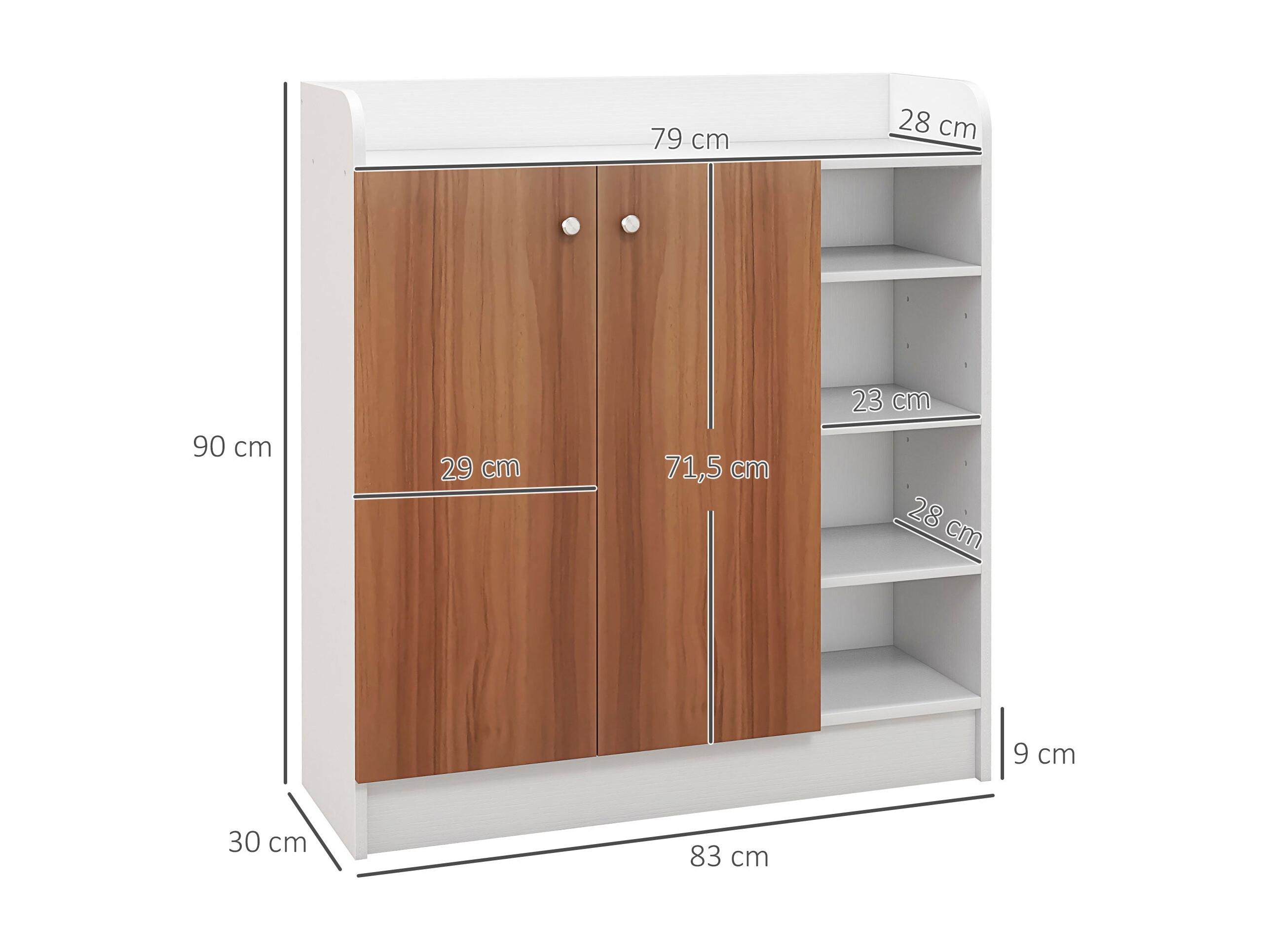 El armario zapatero Dino de Homcom es la solución ideal para mantener tu hogar organizado con estilo. Su diseño moderno y acabado en madera natural lo convierten en un mueble versátil que se adapta perfectamente a cualquier estancia, ya sea el pasillo, el dormitorio, el baño o incluso la entrada. Con un práctico sistema de doble puerta, este zapatero ofrece un amplio espacio de almacenamiento dividido en 4 estantes interiores ajustables y 4 exteriores. Tiene capacidad aproximada para 12 pares de zapatos, permitiéndote organizar calzado, accesorios y otros objetos de forma ordenada y protegida del polvo. Además, cuenta con un estante superior más grande, ideal para pequeños artículos como llaves, guantes o toallas.