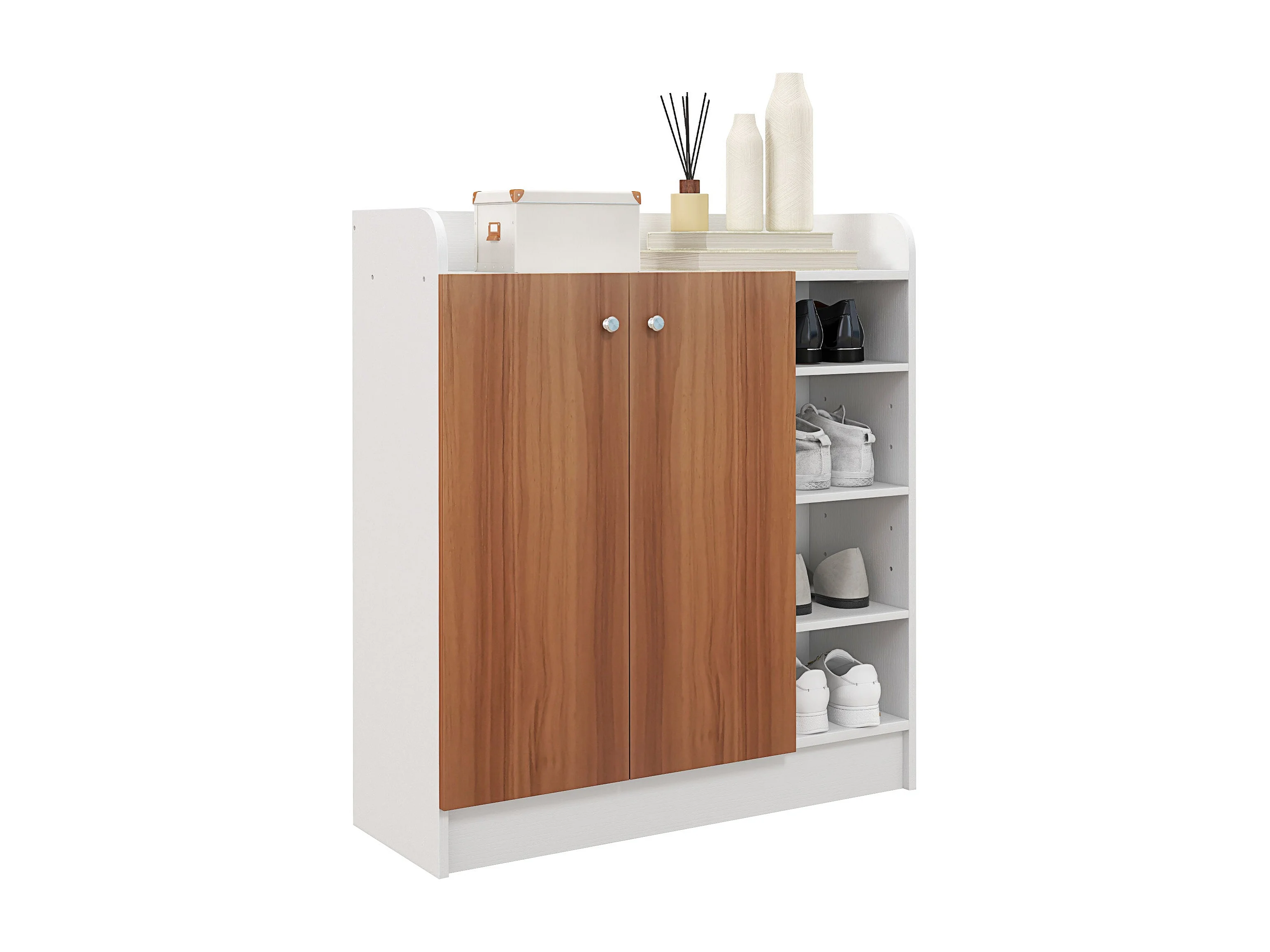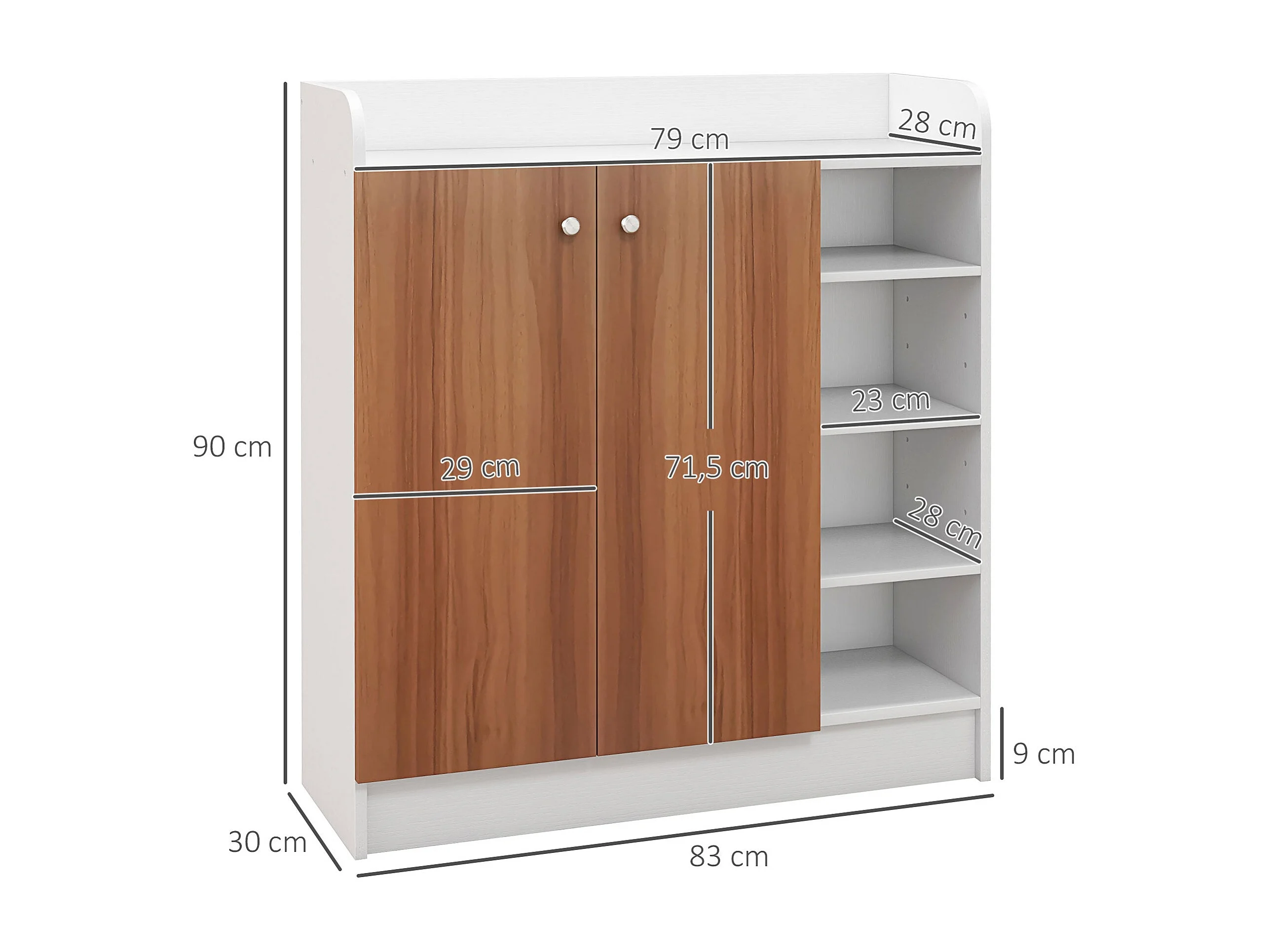 Armario zapatero Dino Homcom 2 puertas + 8 estantes ajustables blanco/natural 90x83x30 cm