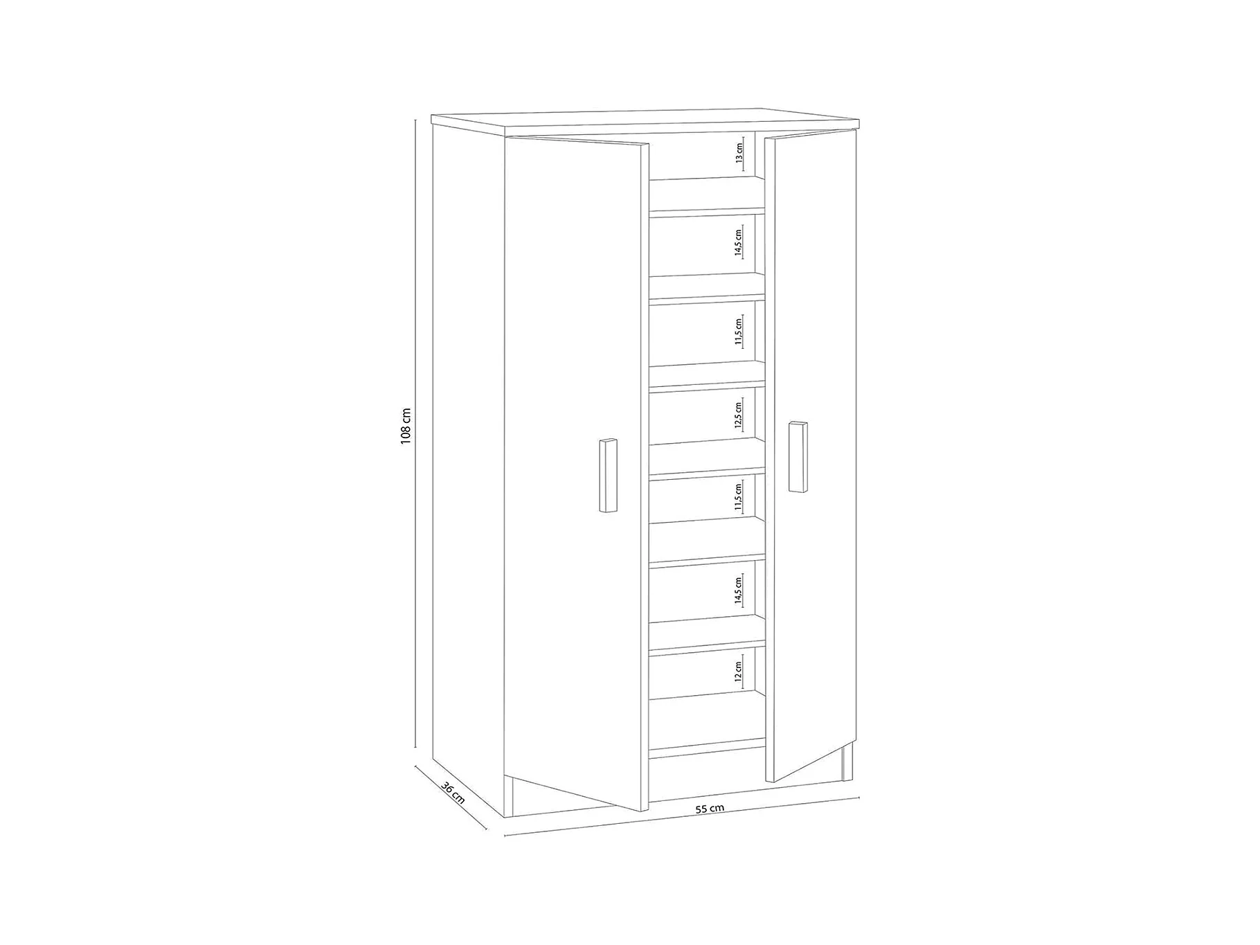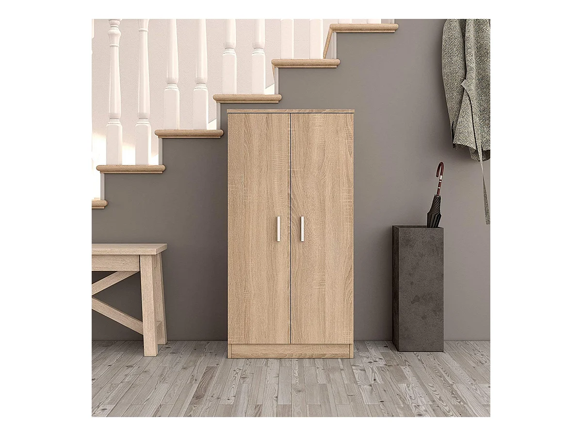 Armario Zapatero Dos Puertas de Madera con Acabado en Roble Canadian - Dim: 55 cm (Ancho) x 108 cm (Alto) x 36 cm (Fondo)