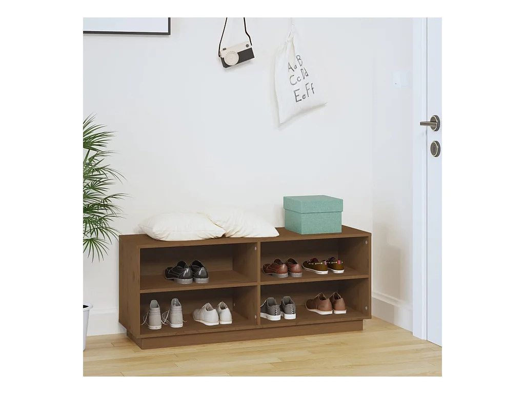 Armario zapatero madera maciza de pino marrón miel 110x34x45 cm ES479311