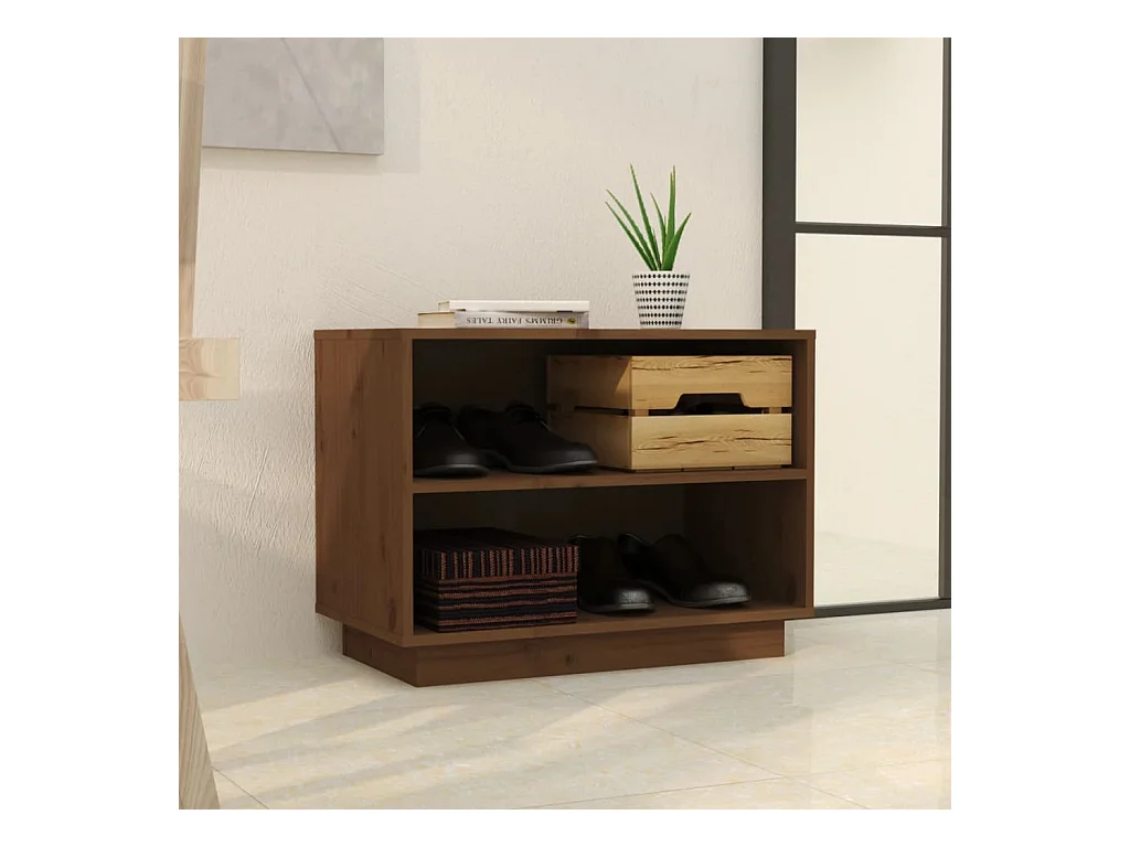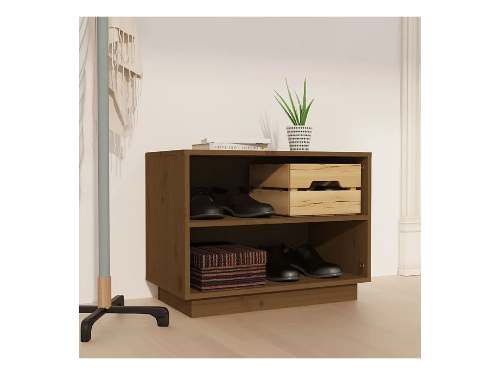 Armario zapatero madera maciza de pino marrón miel 60x34x45 cm ES412459