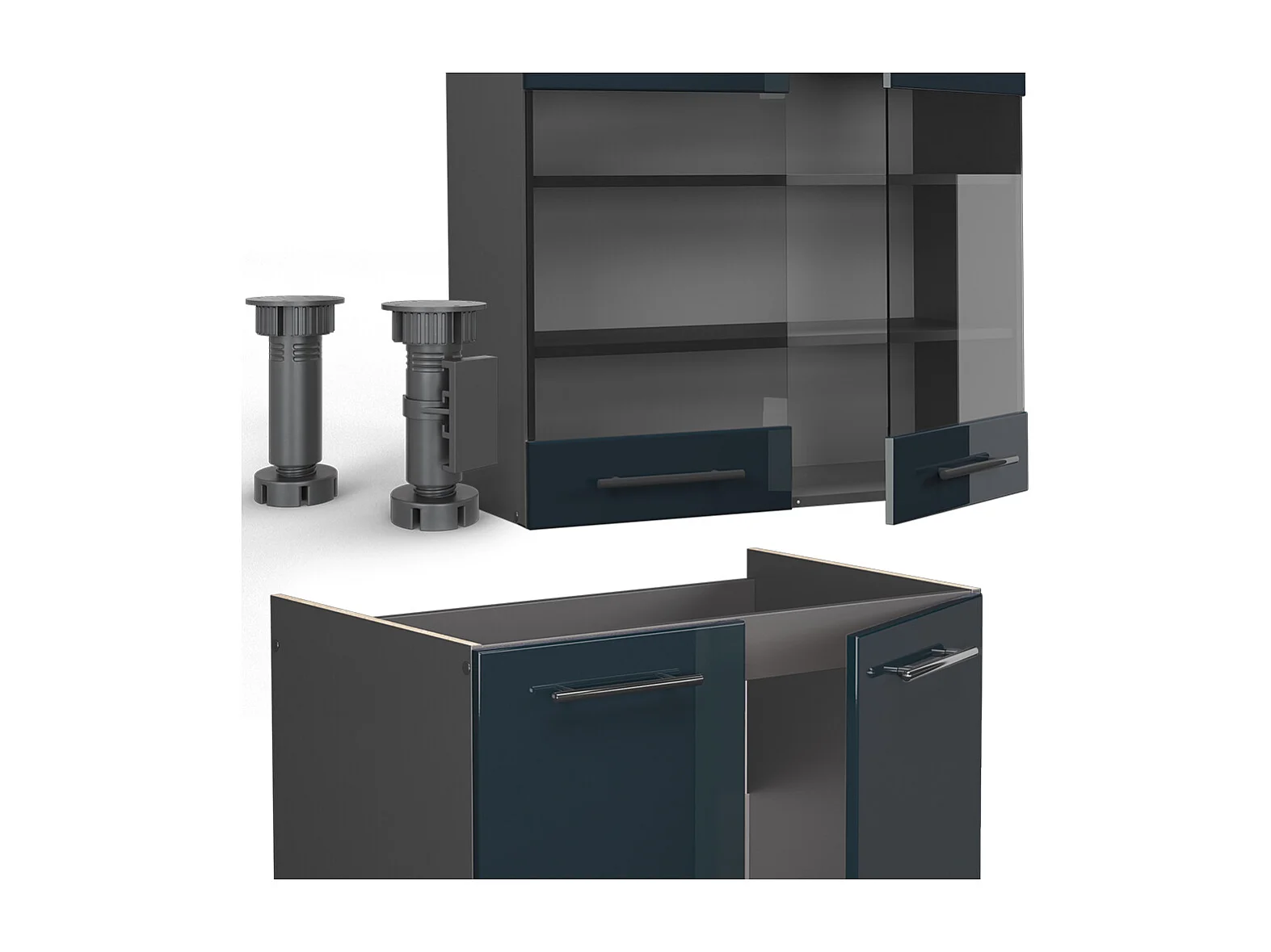 Armarios de cocina azul oscuro alto brillo/antracita 200x60x81.6 fame-line