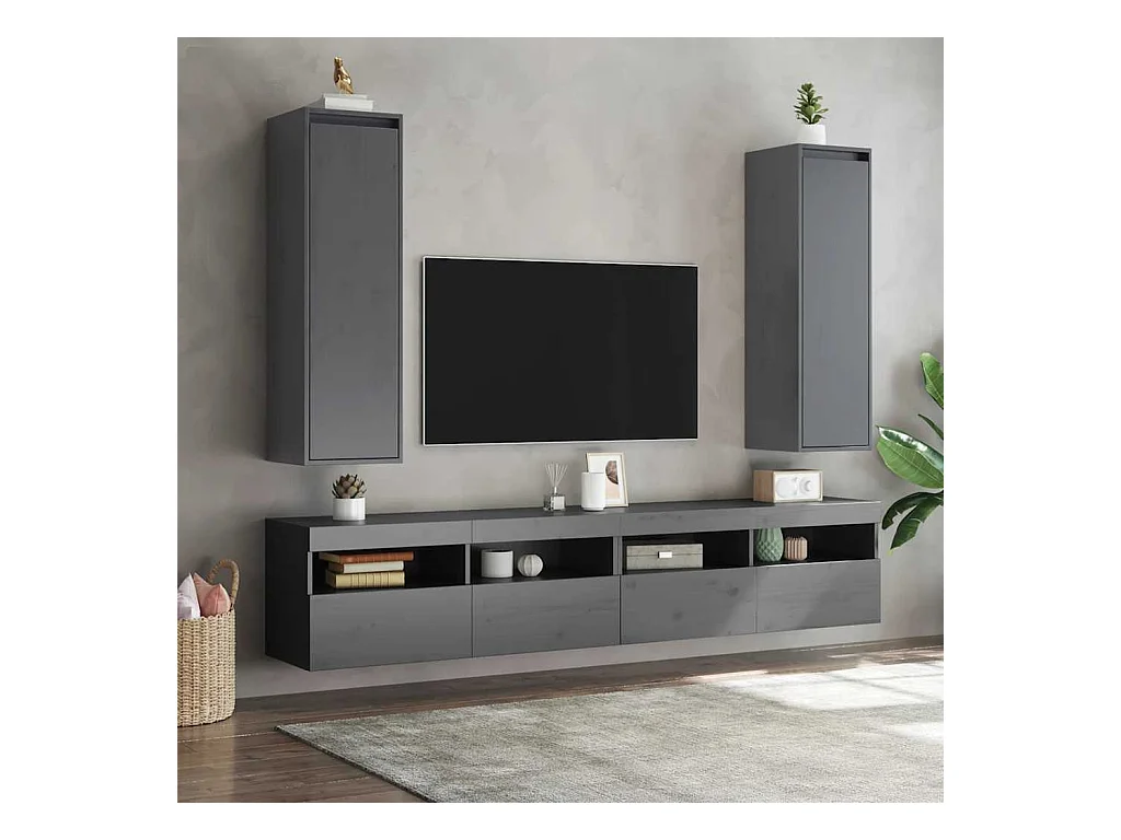 Armarios de pared 2 uds Gris 30x30x100 cm Madera maciza de pino