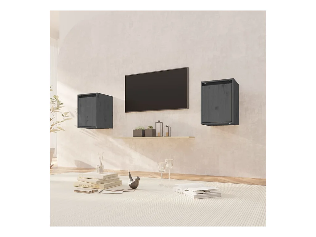 Armarios de pared 2 uds Gris 30x30x40 cm Madera maciza de pino