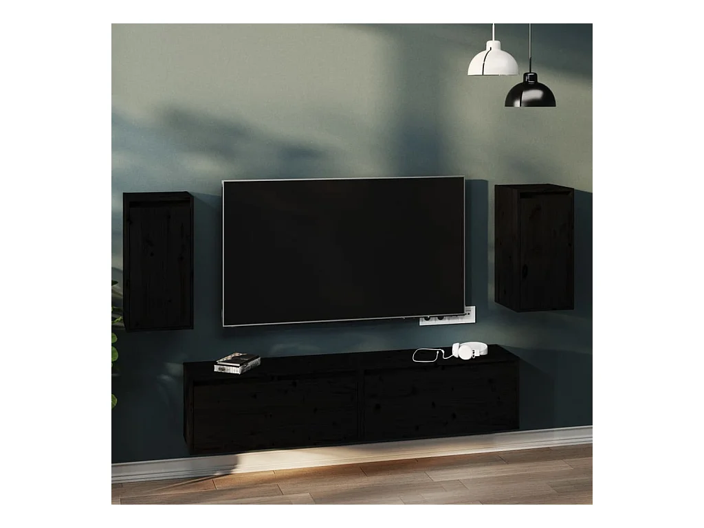 Armarios de pared 2 uds madera maciza de pino negro 60x30x30 cm ES103553