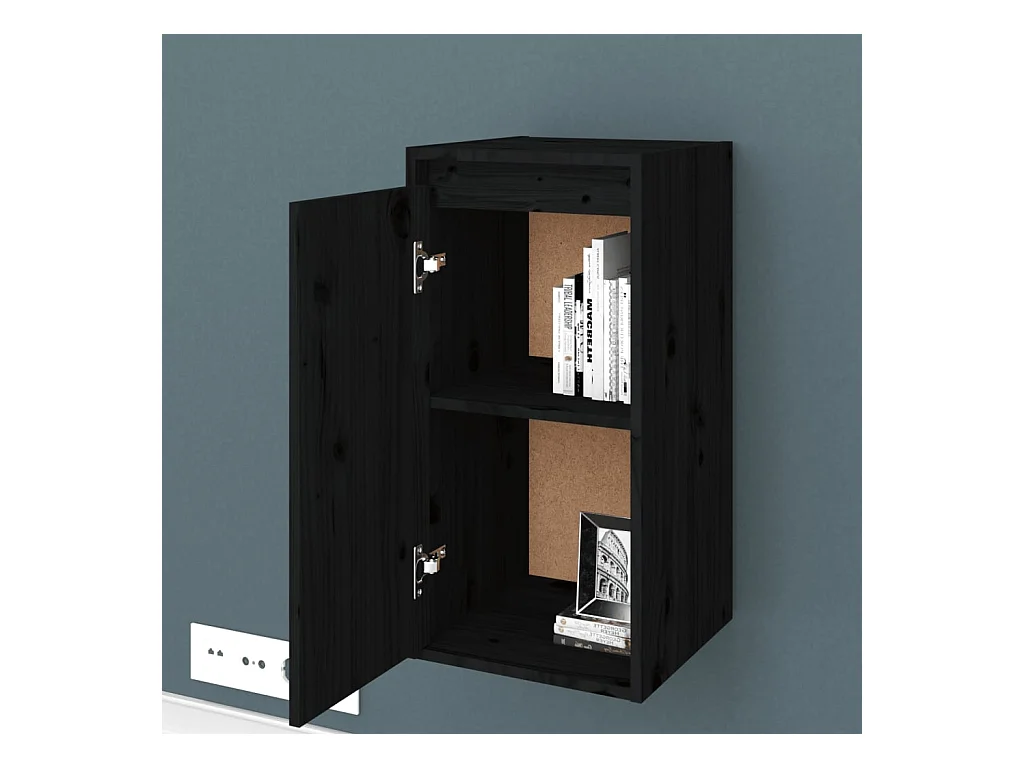 Armario de pared de madera maciza de pino negro 80x30x30 cm ES402841