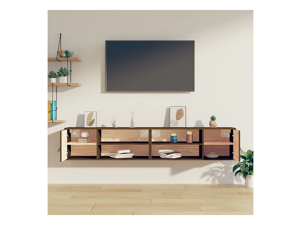 Armarios de pared 2 uds Marrón miel 80x30x30 cm Madera maciza de pino
