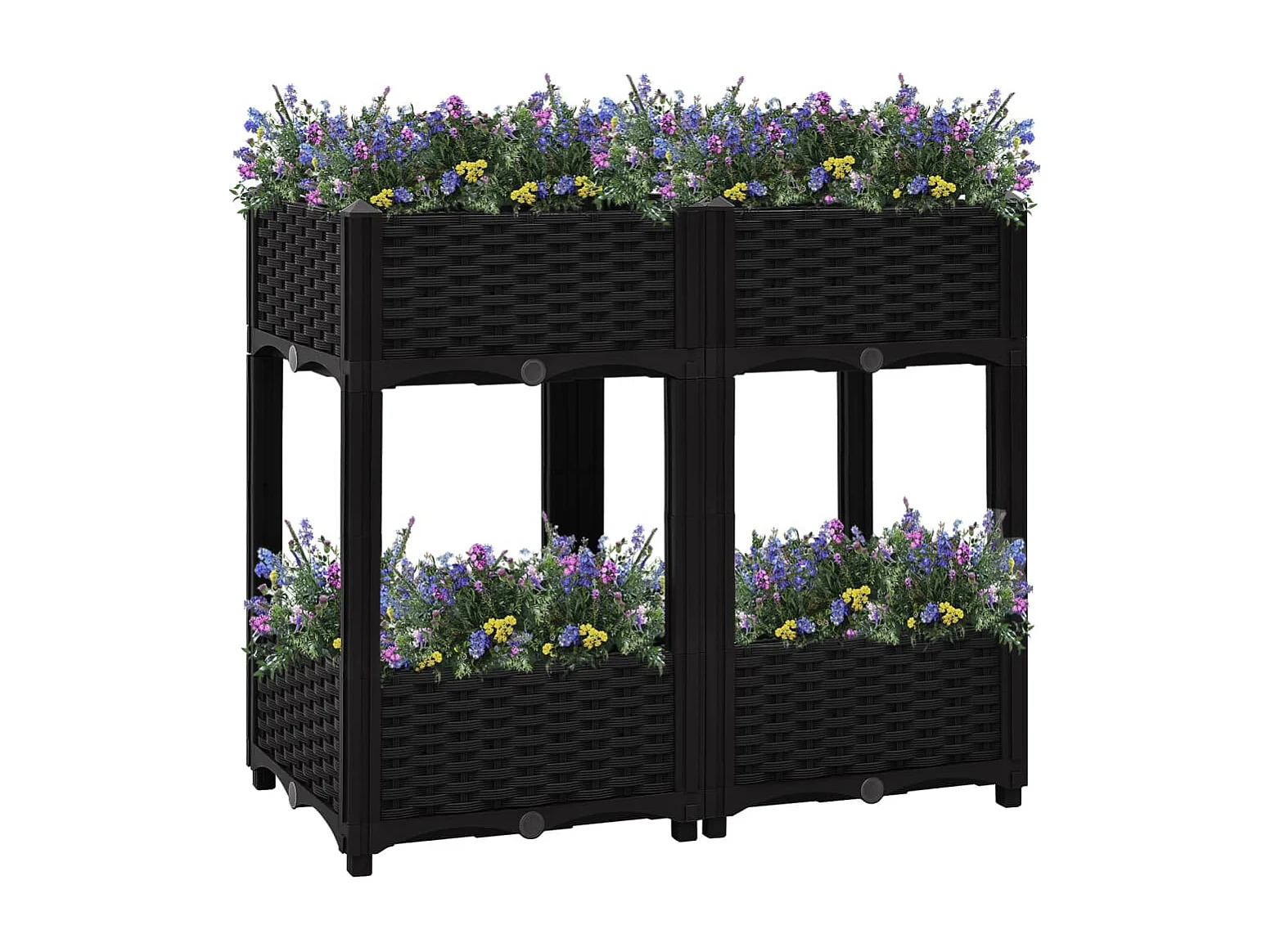 Macetero elevado plantas flores jardín 80 x 40 x 38 cm polipropileno negro 02_0000947