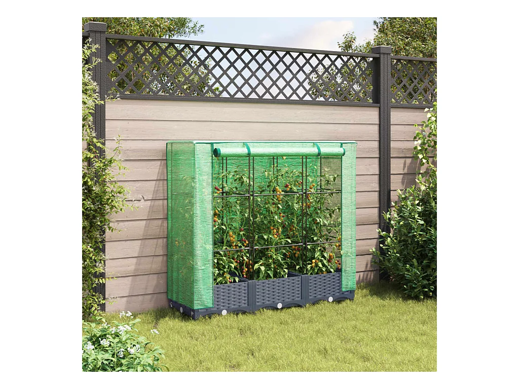 Arriate con cubierta invernadero aspecto ratán 160x40x123 cm