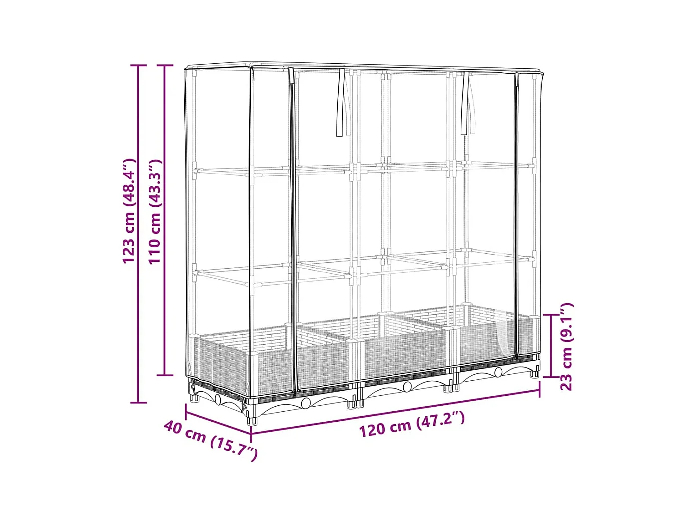 Arriate con cubierta invernadero aspecto ratán 120x40x123 cm