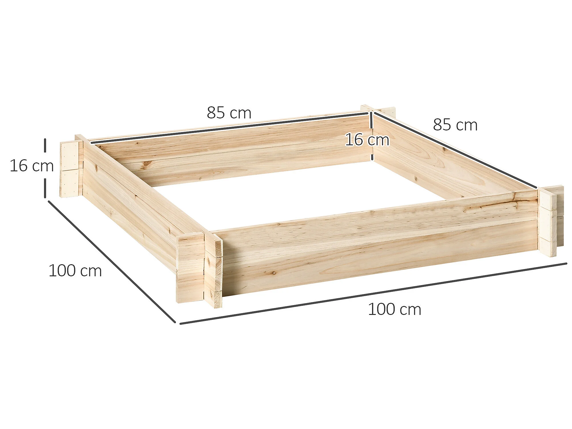 Arriate de madera madera natural 100x100x16 cm Outsunny