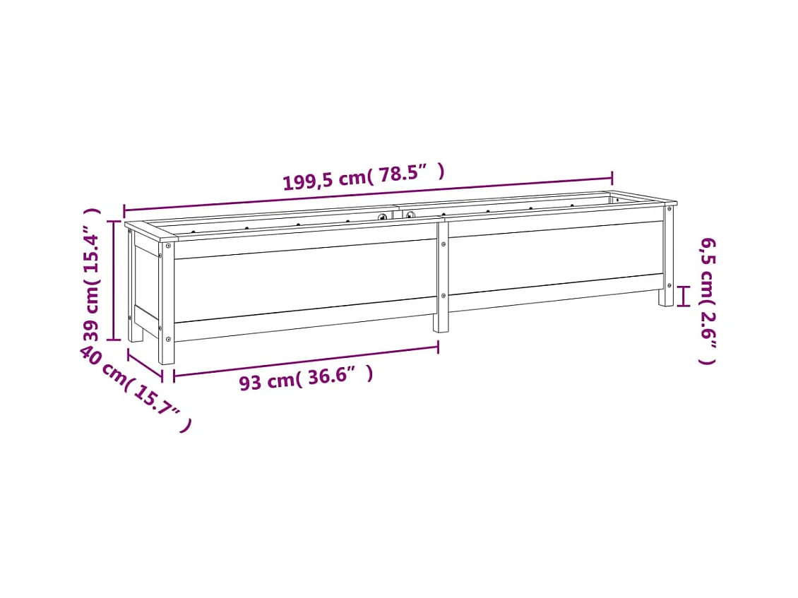 Arriate elevado de jardín madera de pino blanco 199,5x40x39 cm