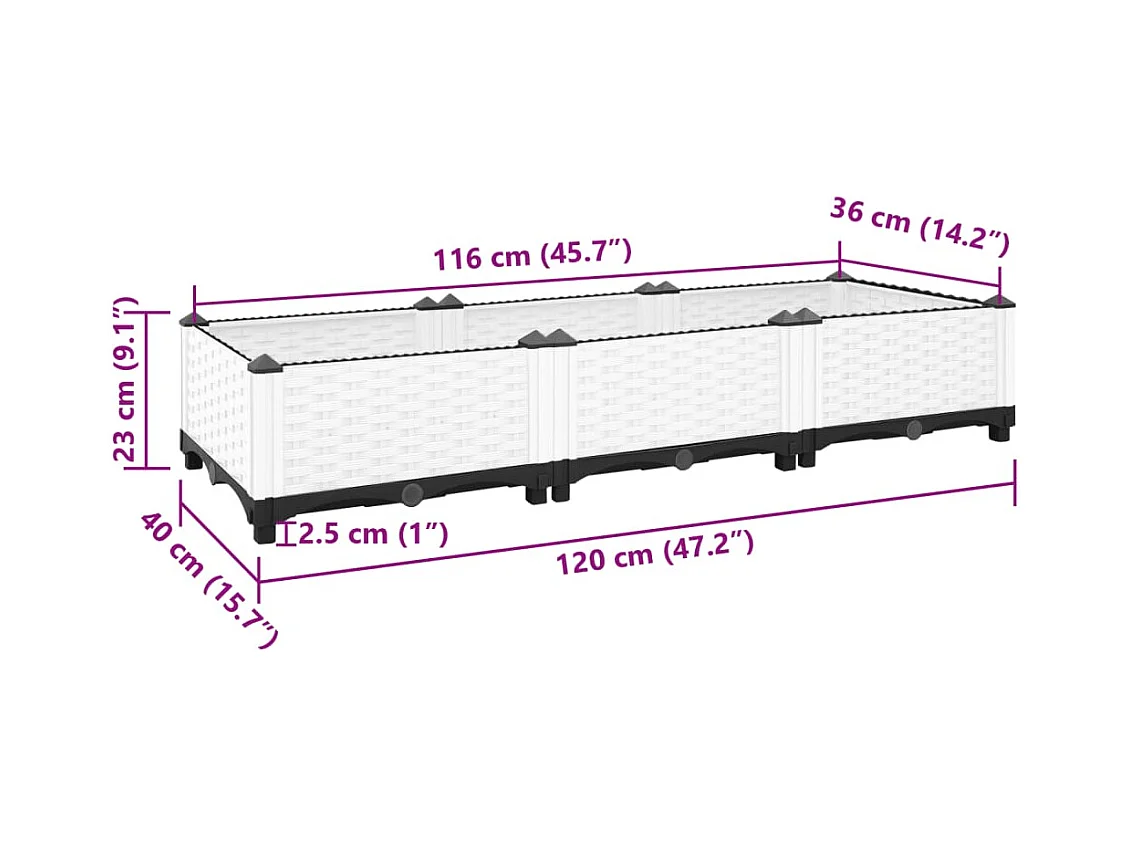 Arriate elevado de jardín PP blanco 100x43x35 cm