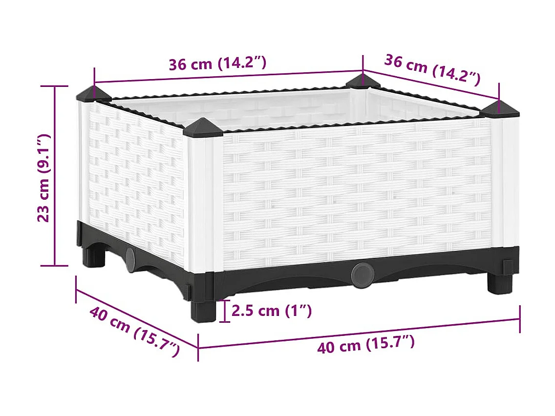 Arriate elevado de jardín PP blanco 100x43x35 cm