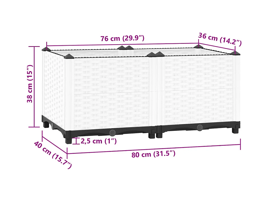 Arriate elevado de jardín PP blanco 100x43x35 cm