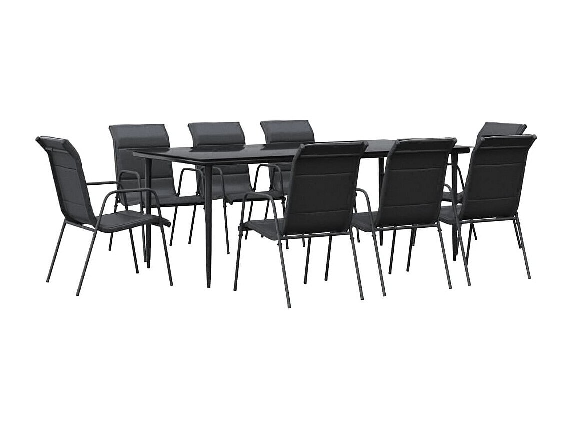 Årslev Juego de comedor para jardín 9 piezas acero y textilene negro