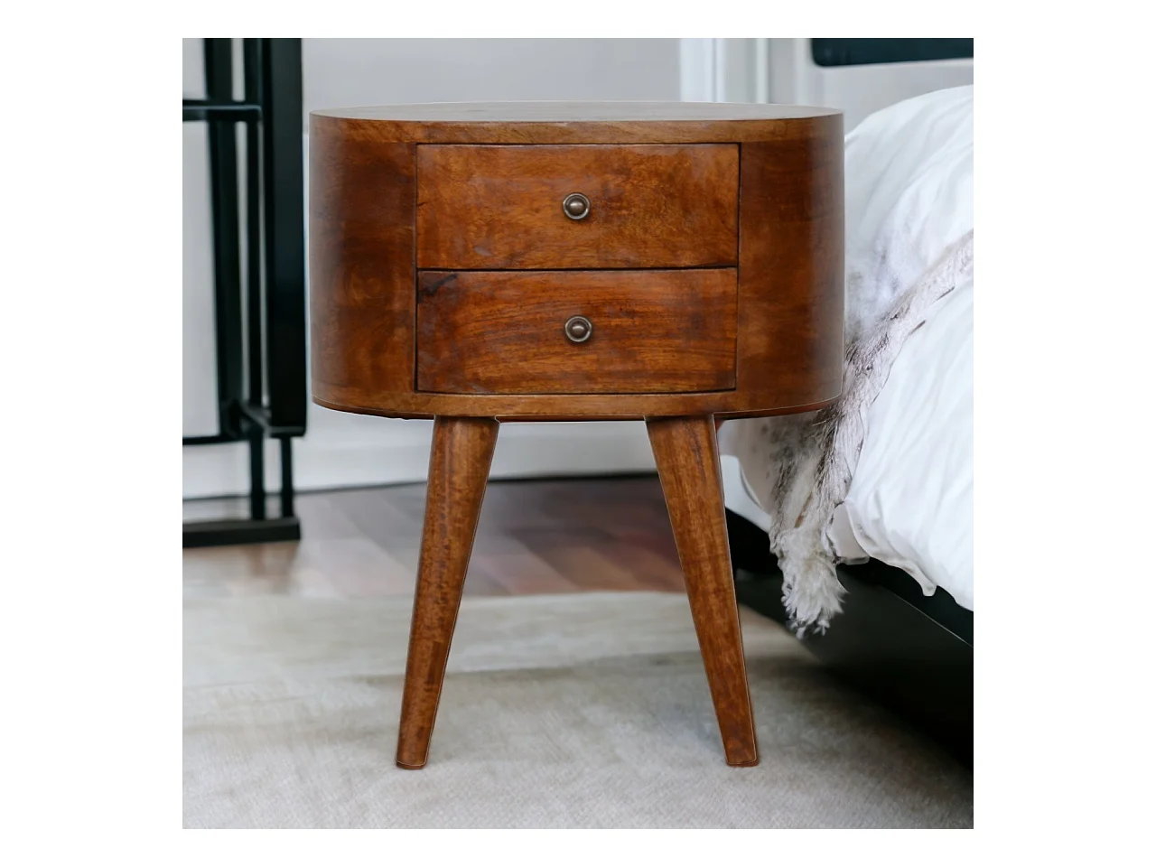 Artisan Furniture Madera Sólida Mini Castaño Curvada Mesita, Mesita de Noche